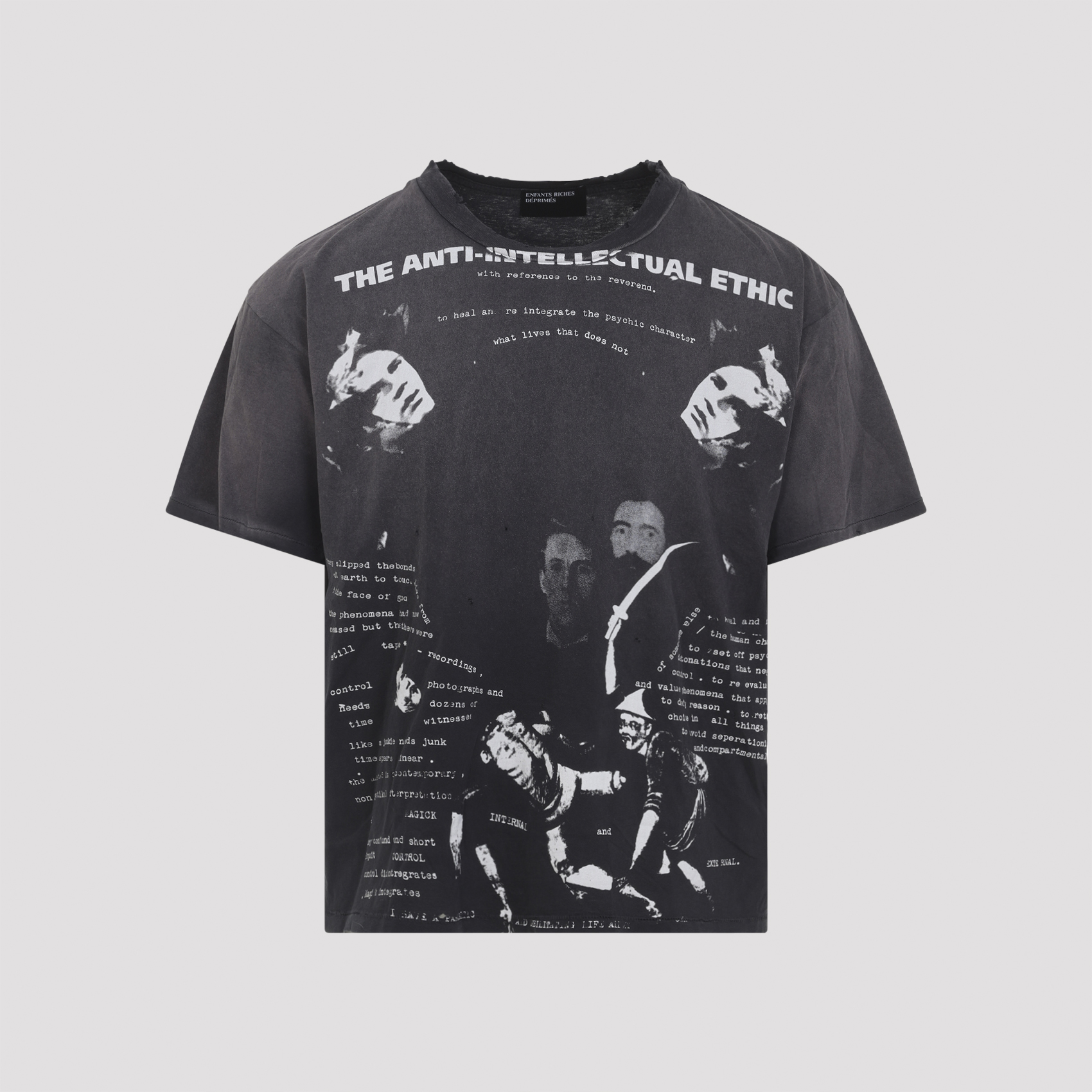 ENFANTS RICHES DÉPRIMÉS(アンファン リッシュ デプリメ)は、憂鬱で裕福な子供たちという意味を持つブランドです。2012年にコンセプチュアルアーティストであるアンリ アレクサンダー レヴィ(Henri Alexander Levy)が設立したロサンゼルスとパリを拠点とするアヴァンギャルドなラグジュアリーファッションブランド。 このブランドは、1970年代末のフレンチパンクと1980年代の日本アヴァンギャルドを融合させたスタイルを掲げ、DIY精神やデコンストラクションを通じて「エリート主義とパンク」を同時に体現する、意図的に排他的な哲学を持ちます。 手描き風のグラフィックや破れ加工を施したTシャツ、限定生産のレザーアイテムやジャケットなどが特徴的です。