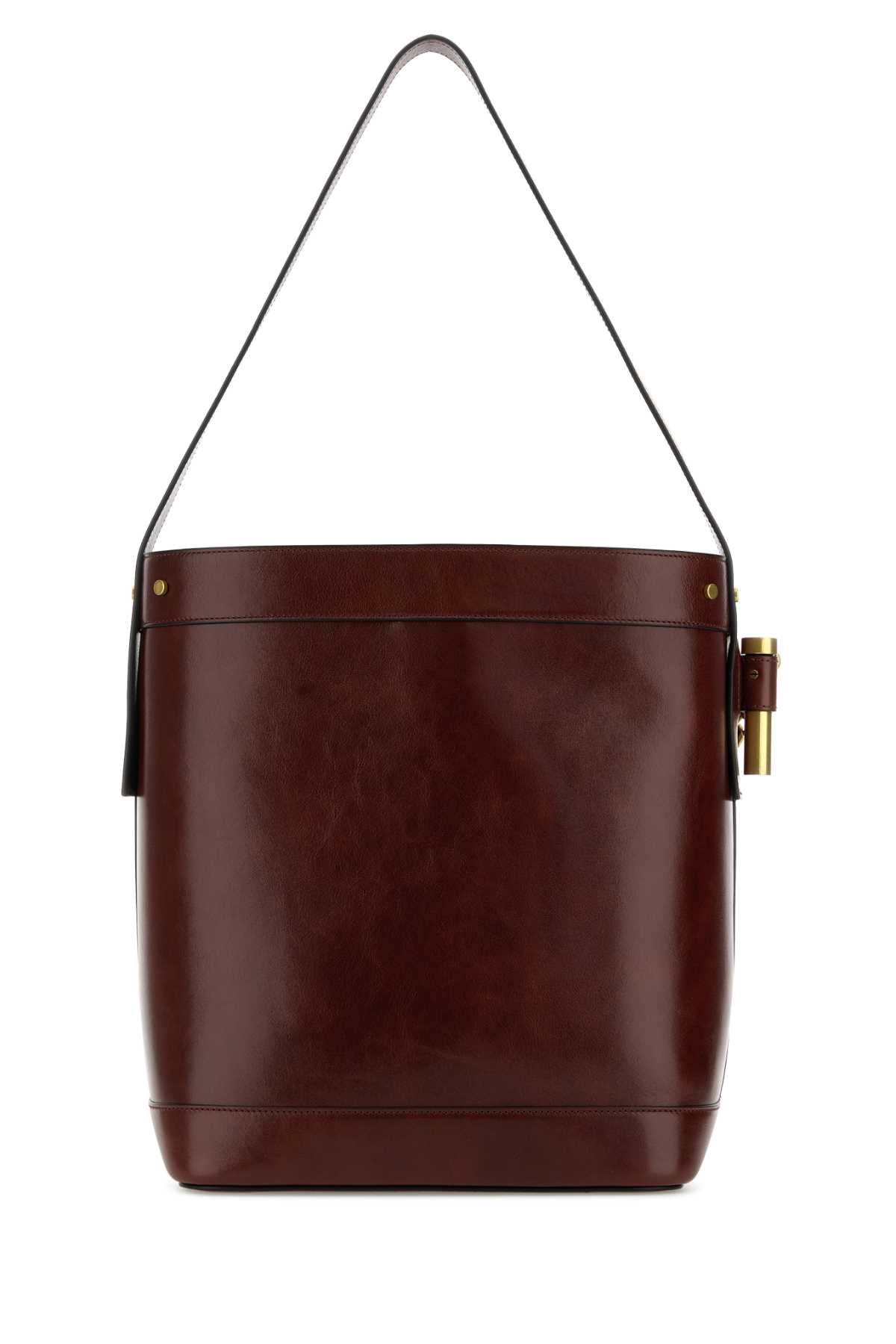 - Burgundy leather bucket bag