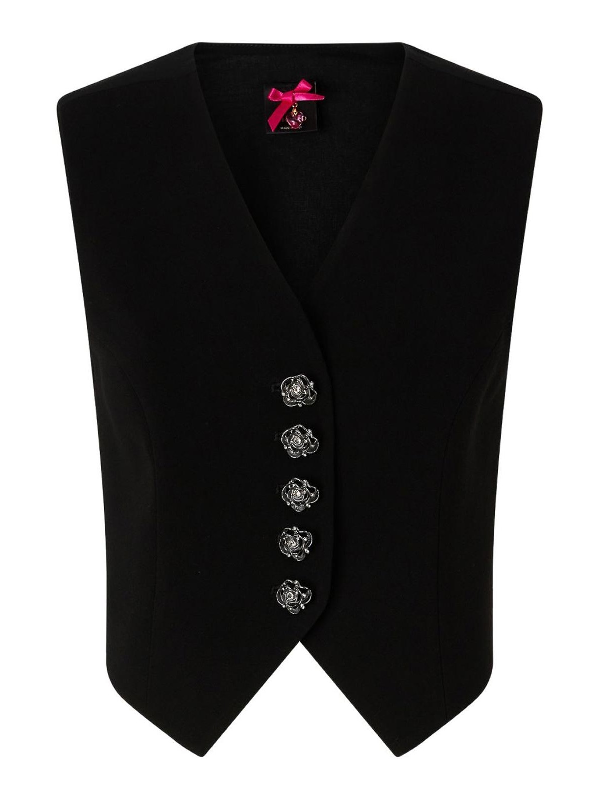 - Black Vest With Rose-Shaped Buttons