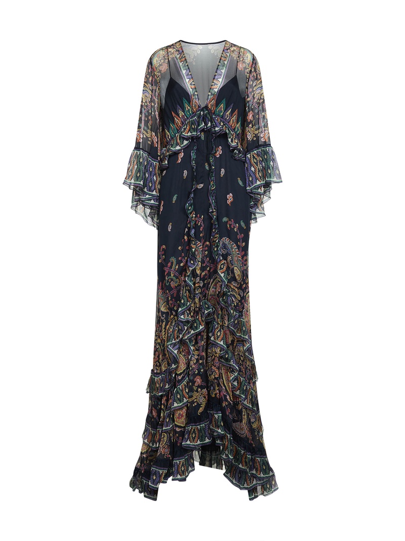 ETRO(エトロ)は、イタリアのファッションブランドで、1968年にジェローラモ・エトロによって設立されました。このブランドは、ボヘミアンなスタイル、エスニックなプリント、幾何学模様、鮮やかな色彩で知られています。ETROはアパレル、アクセサリー、バッグ、シューズ、香水など多彩なアイテムを展開し、エレガントでユニークなスタイルを提供しています。その独自のファッションアイデンティティと熱烈なファッション愛好家からの支持により、世界中で高い評価を受けています。