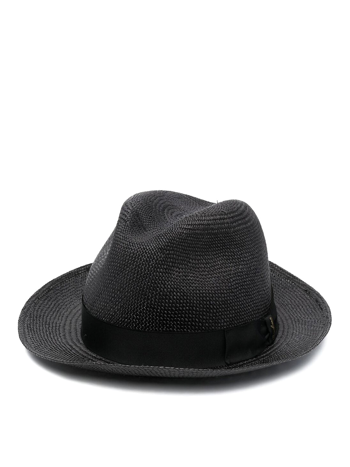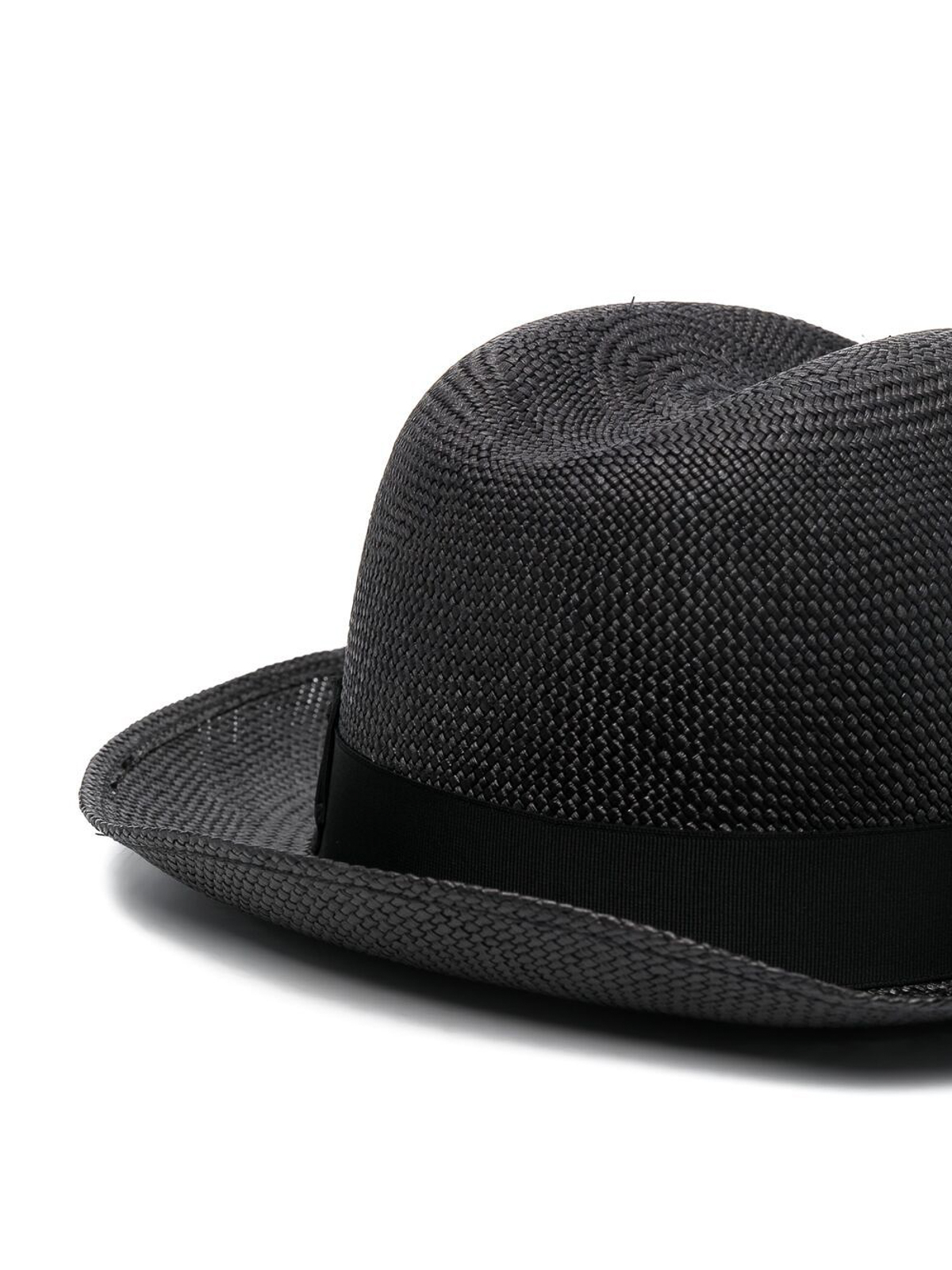 - Jet-black straw curved-brim hat