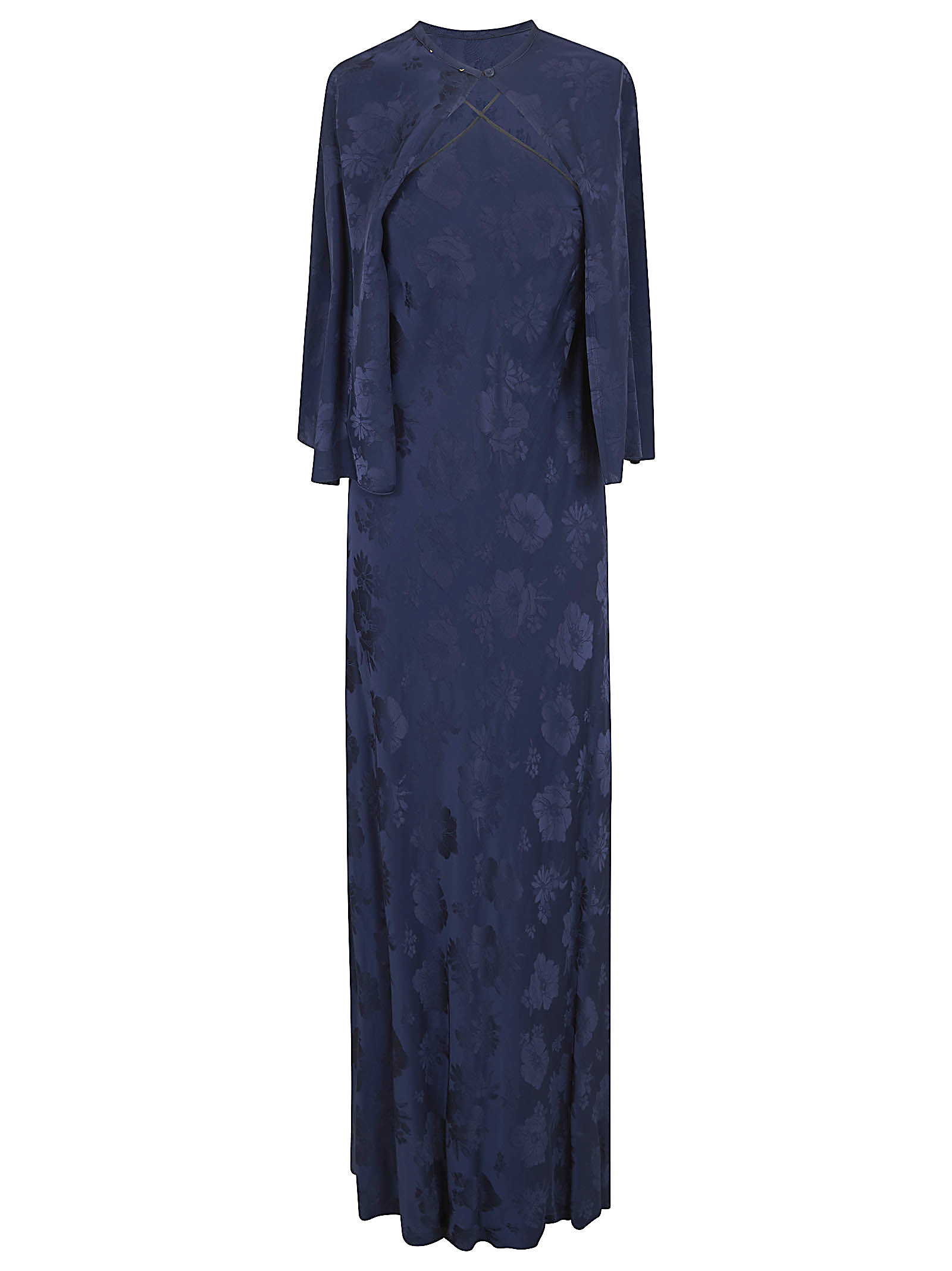 - fluid bouquet jacquard bias dress with cape