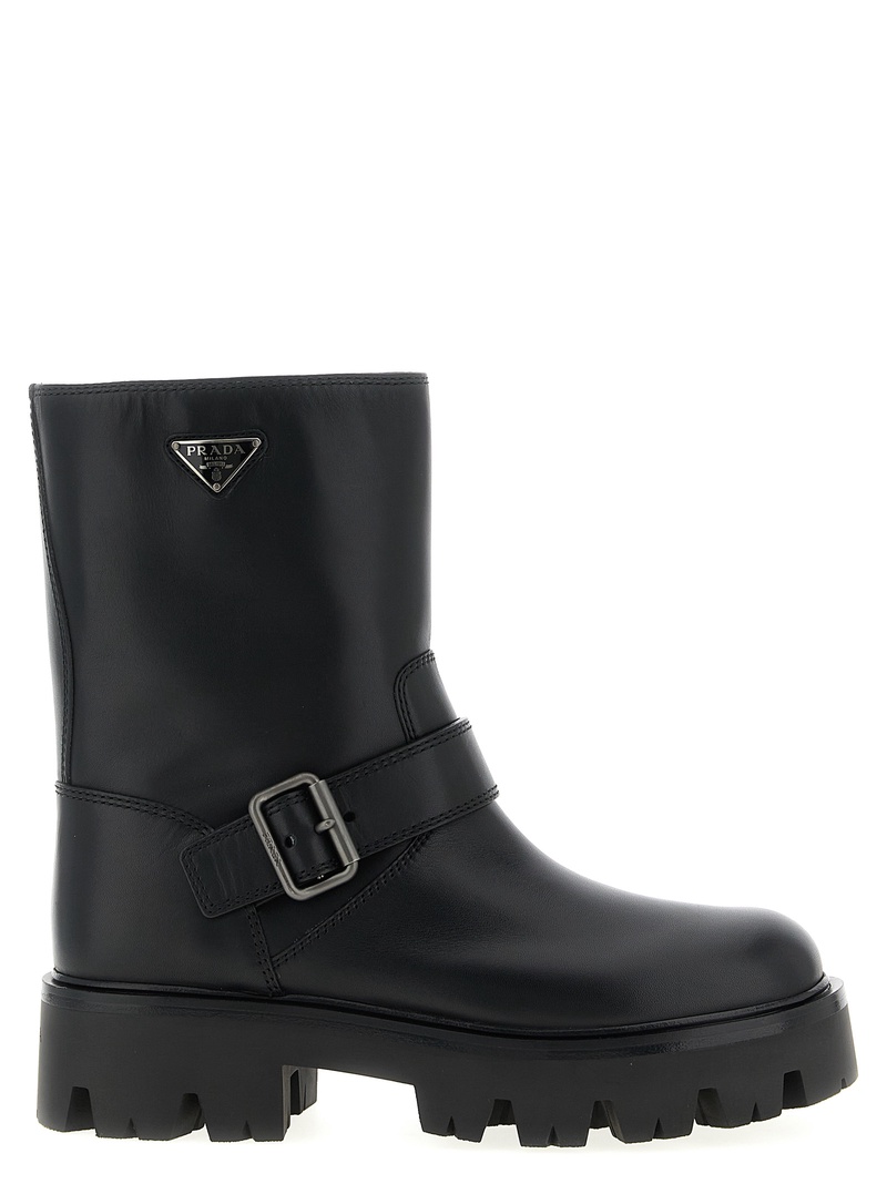 - Dark brown leather ankle boots