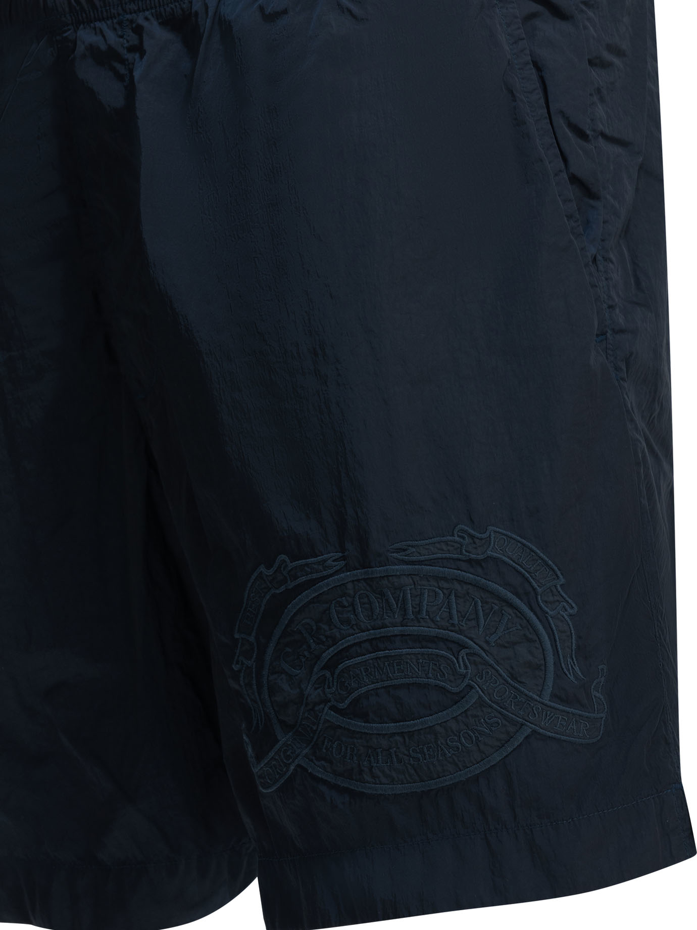 - "Eco-Chrome Embroidery" beach shorts