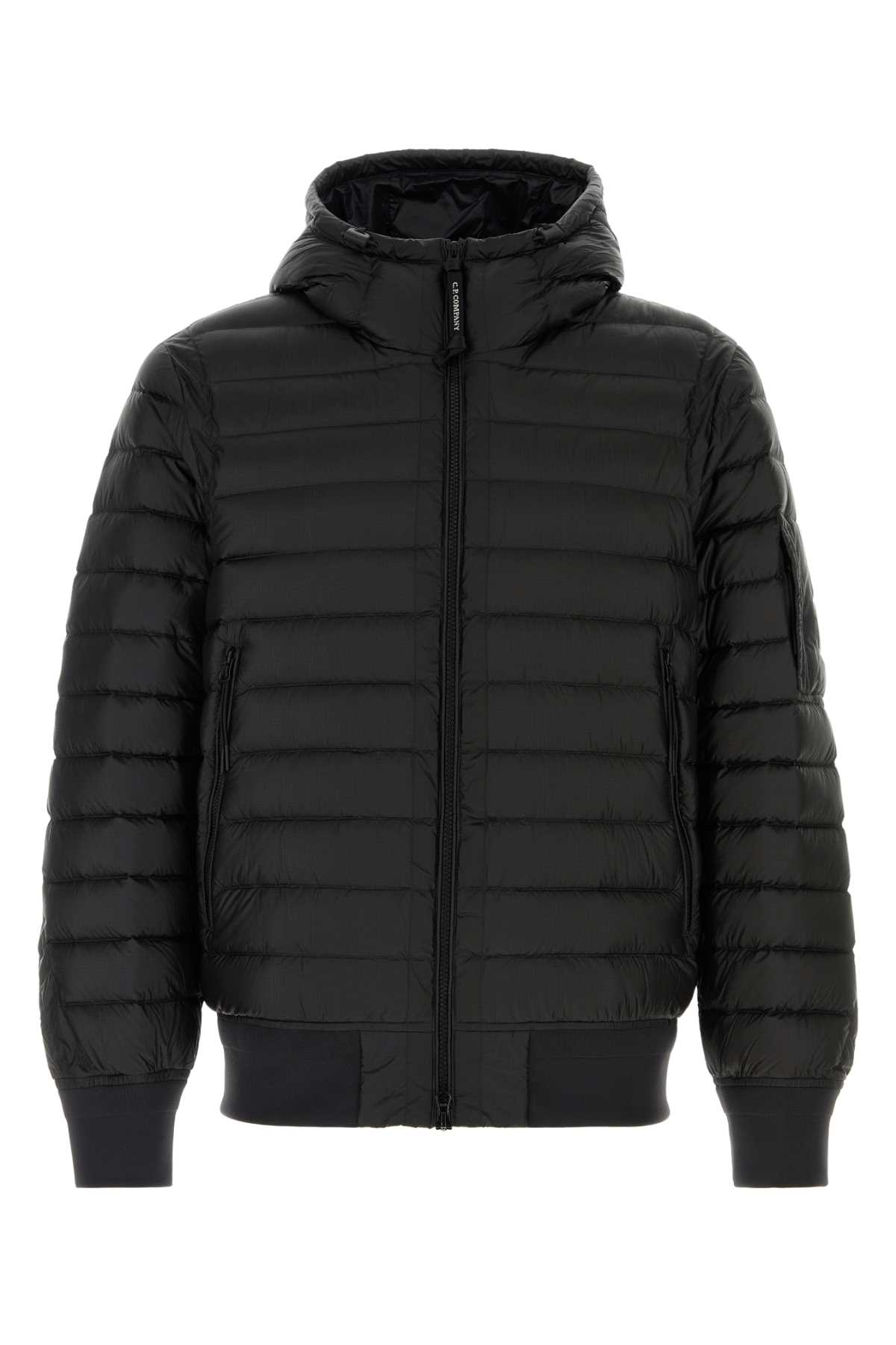- Black nylon down jacket