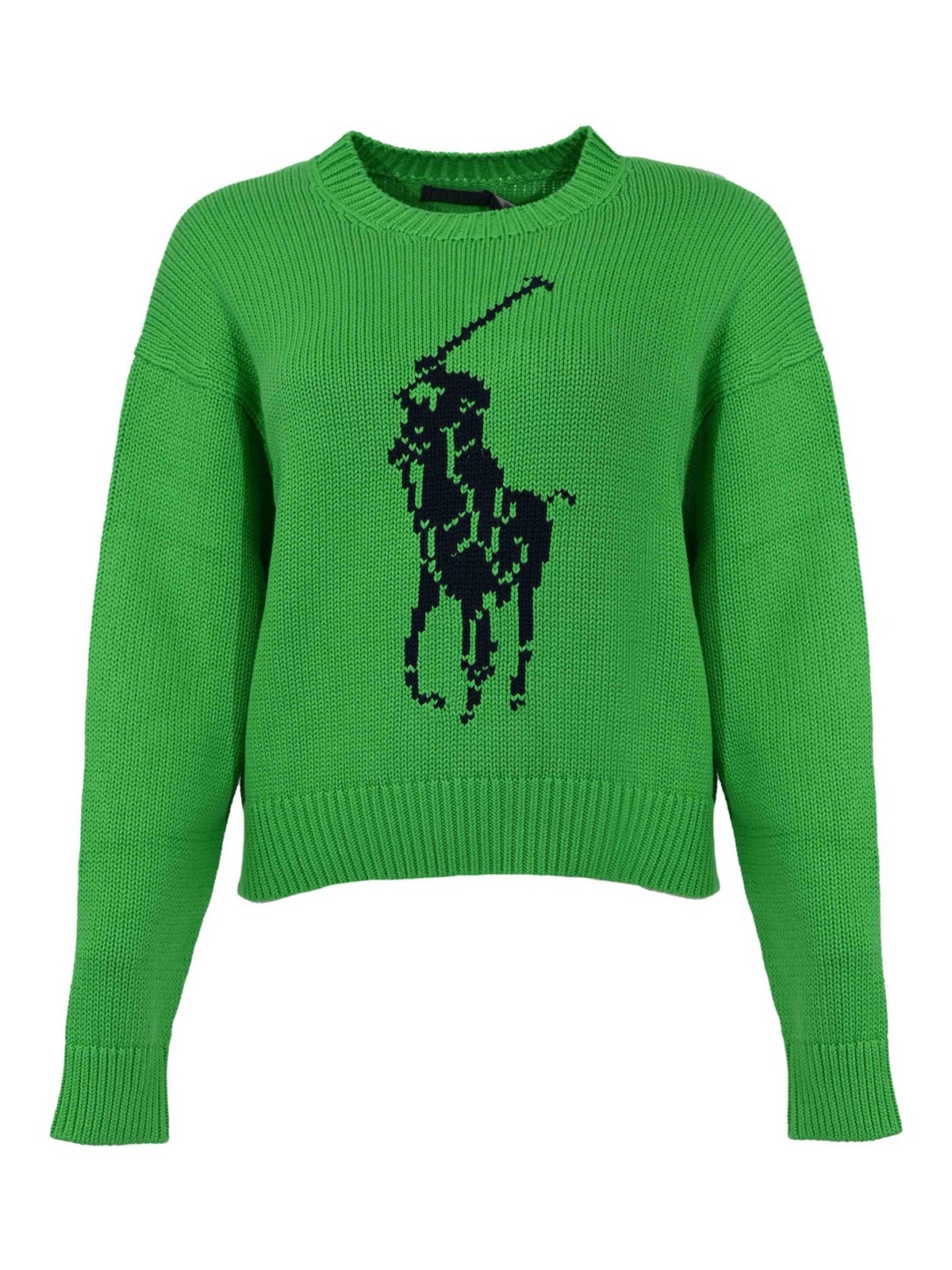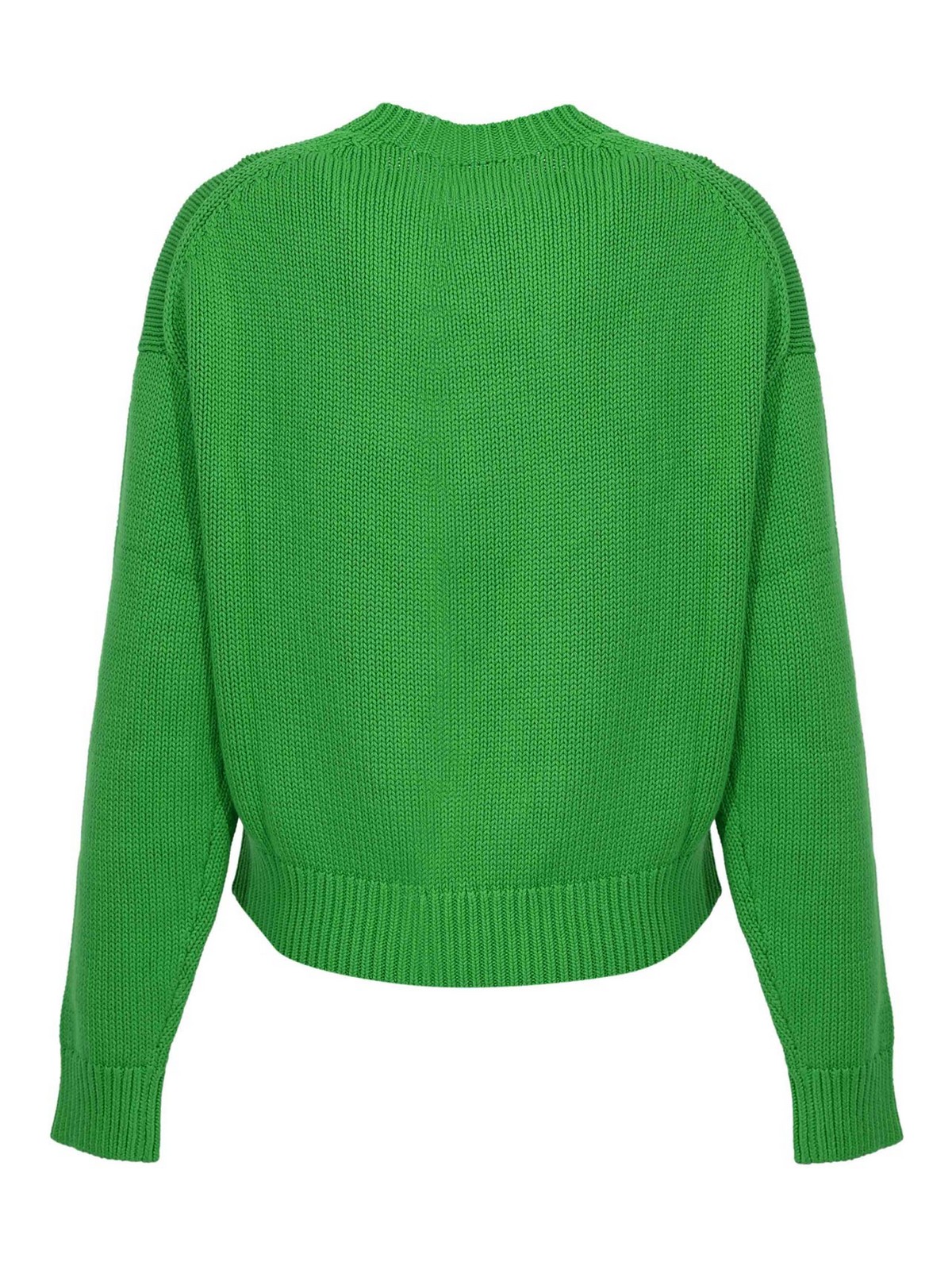 - Cotton sweater with green intarsia logo