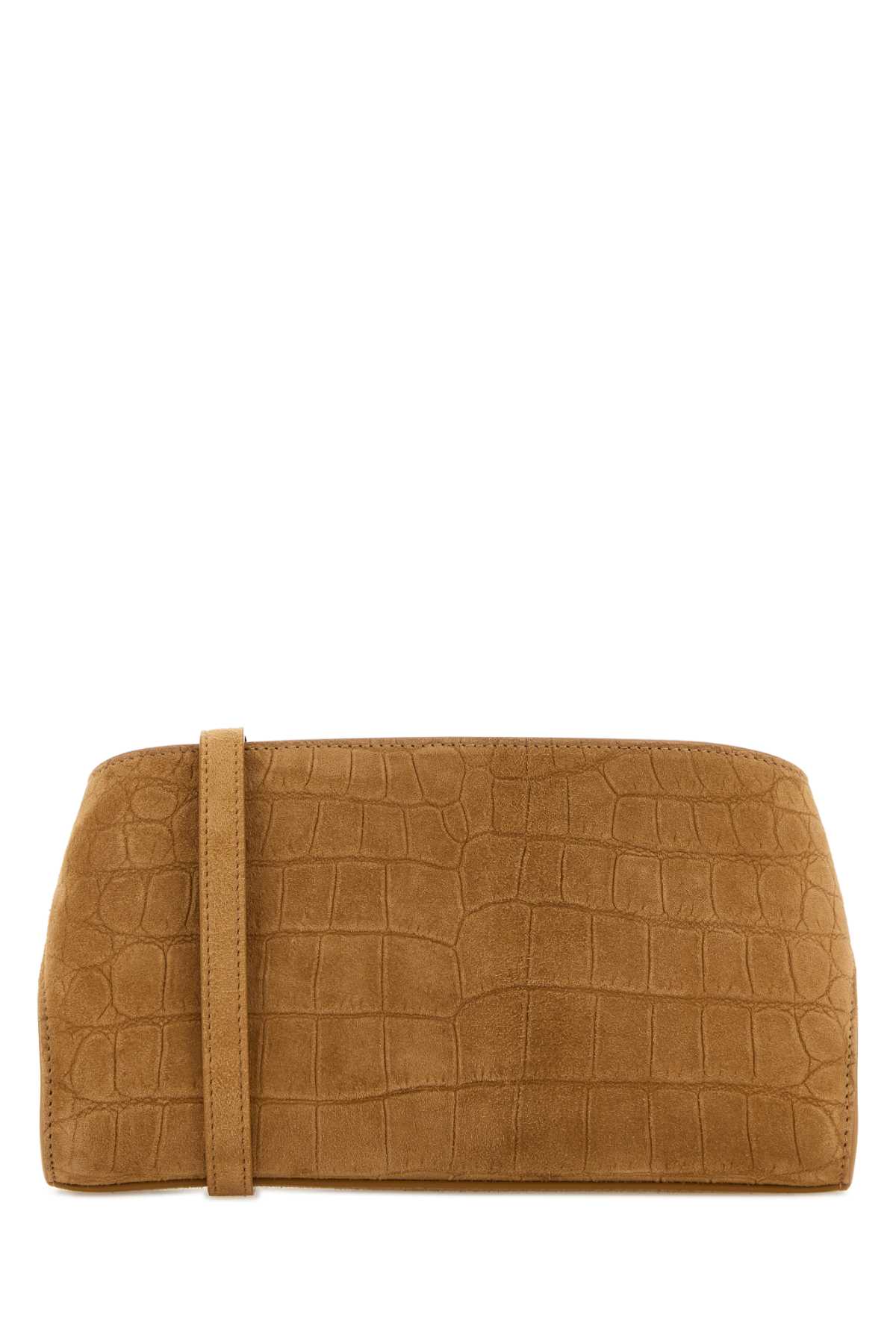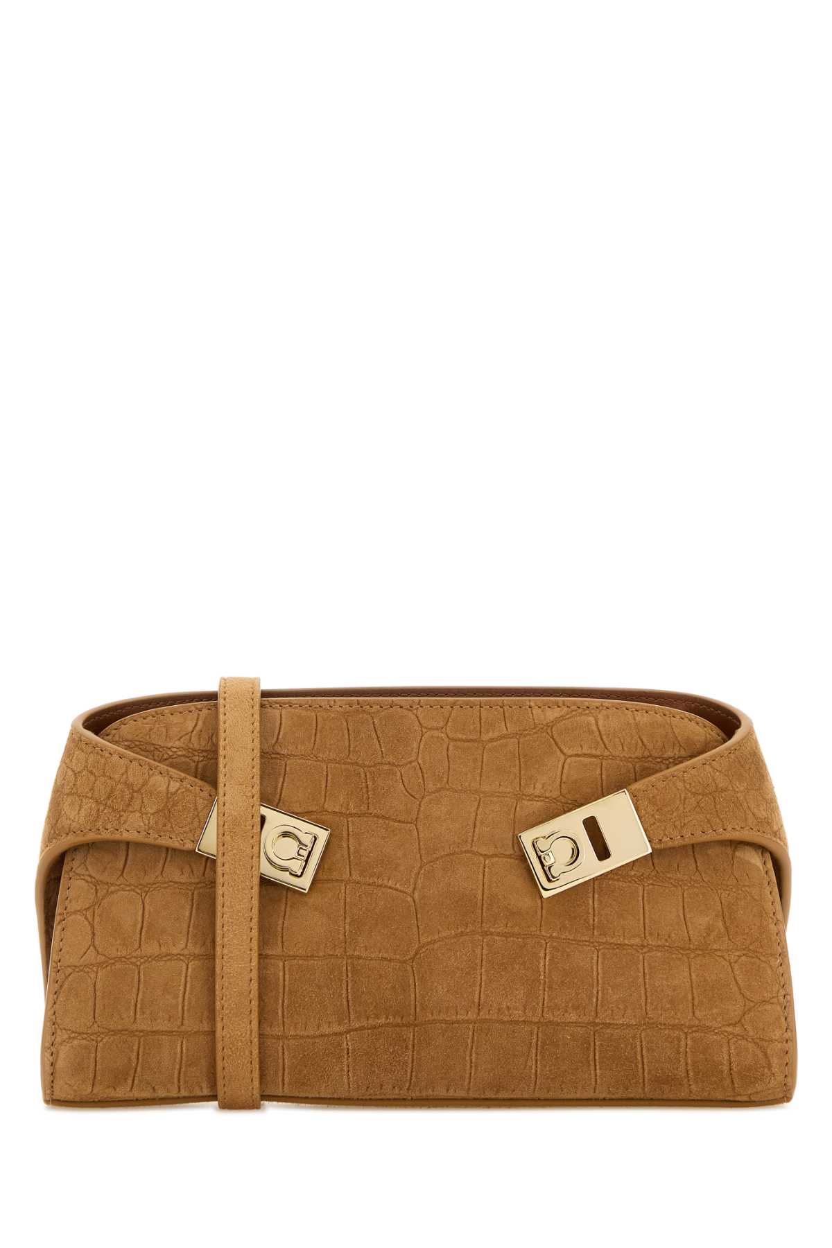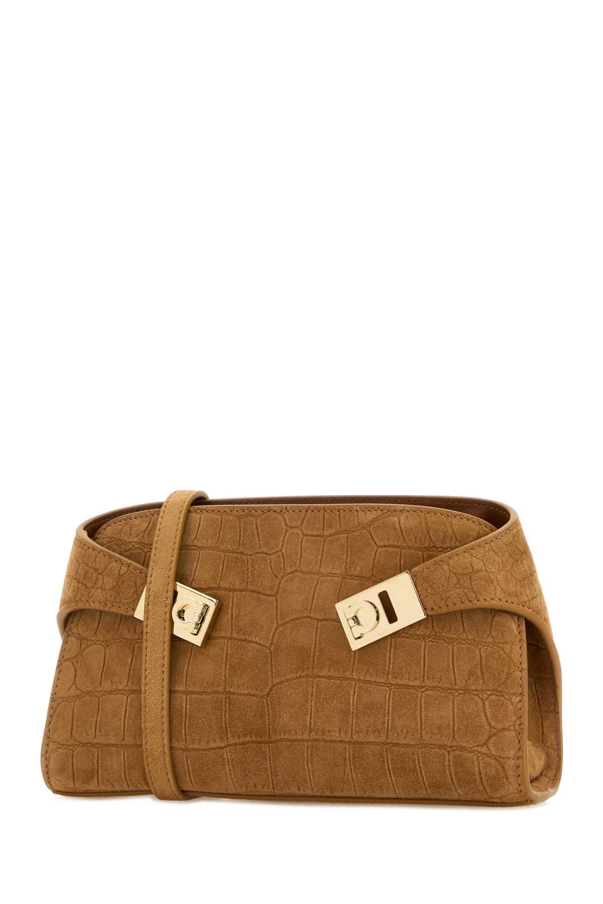 - Camel suede mini Hug crossbody bag