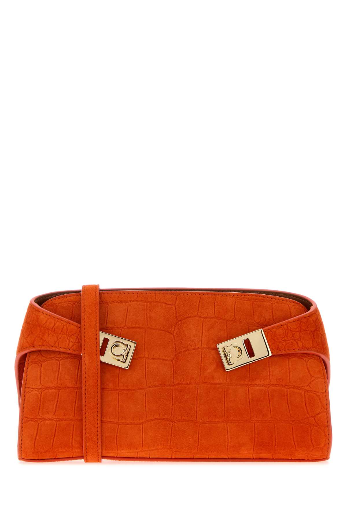 - Orange suede Hug clutch