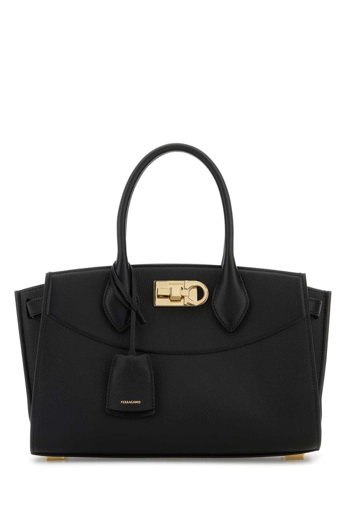 - Black leather handbag