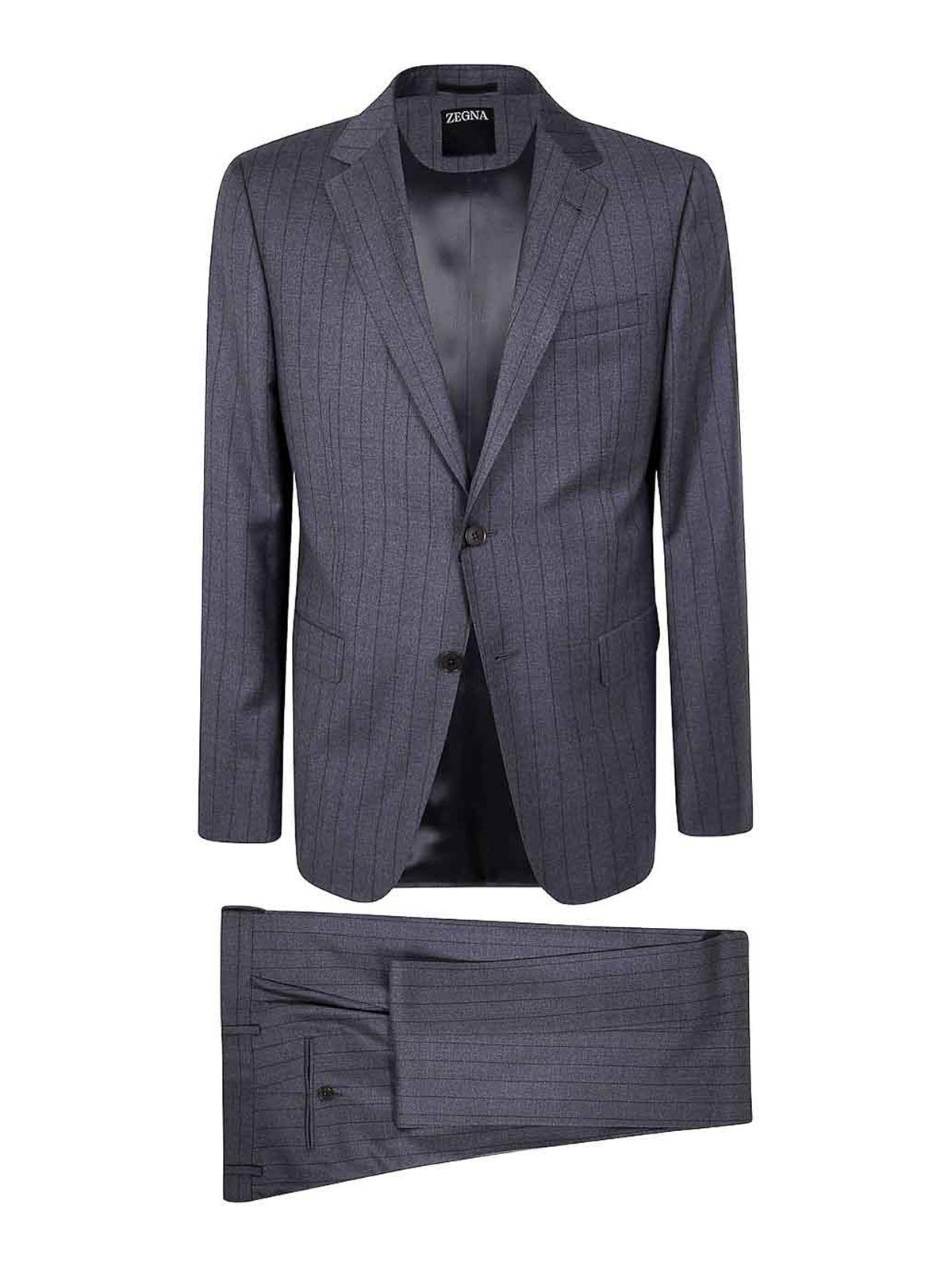 - Single-breasted pinstriped wool suit