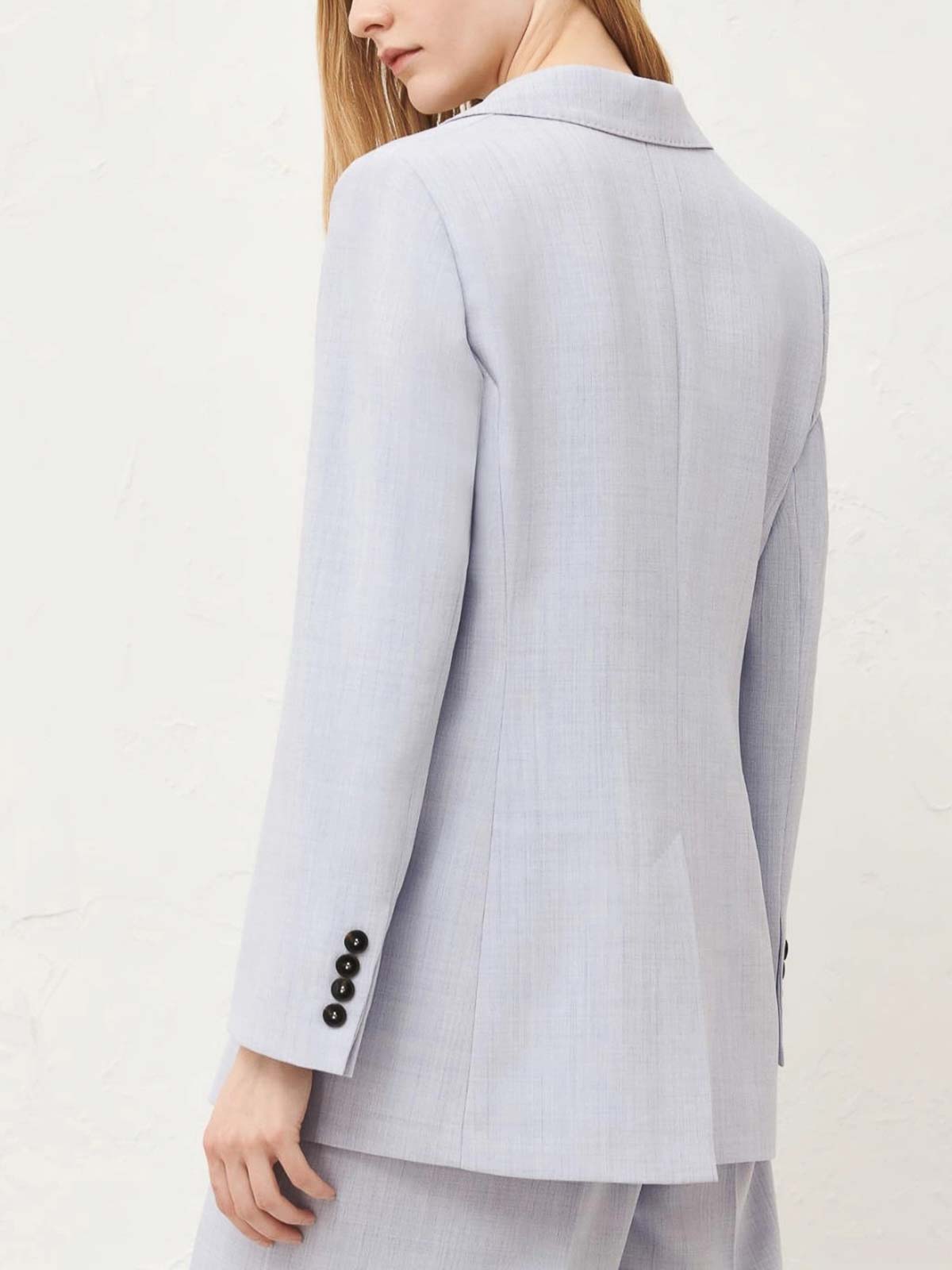 - Single-breasted light blue jacket