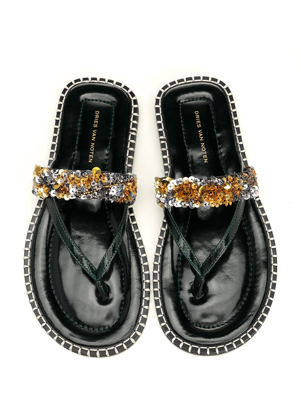 - Leather flip-flops with sequins