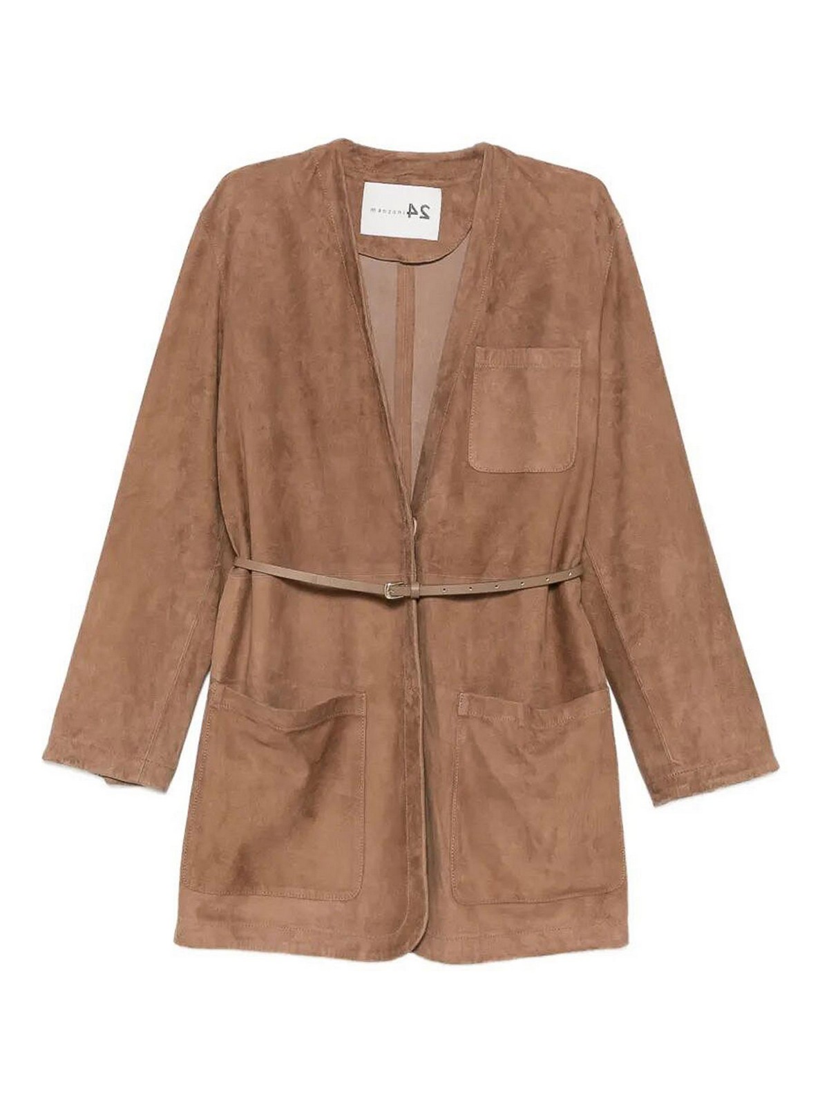- Suede Jacket With Leather Belt