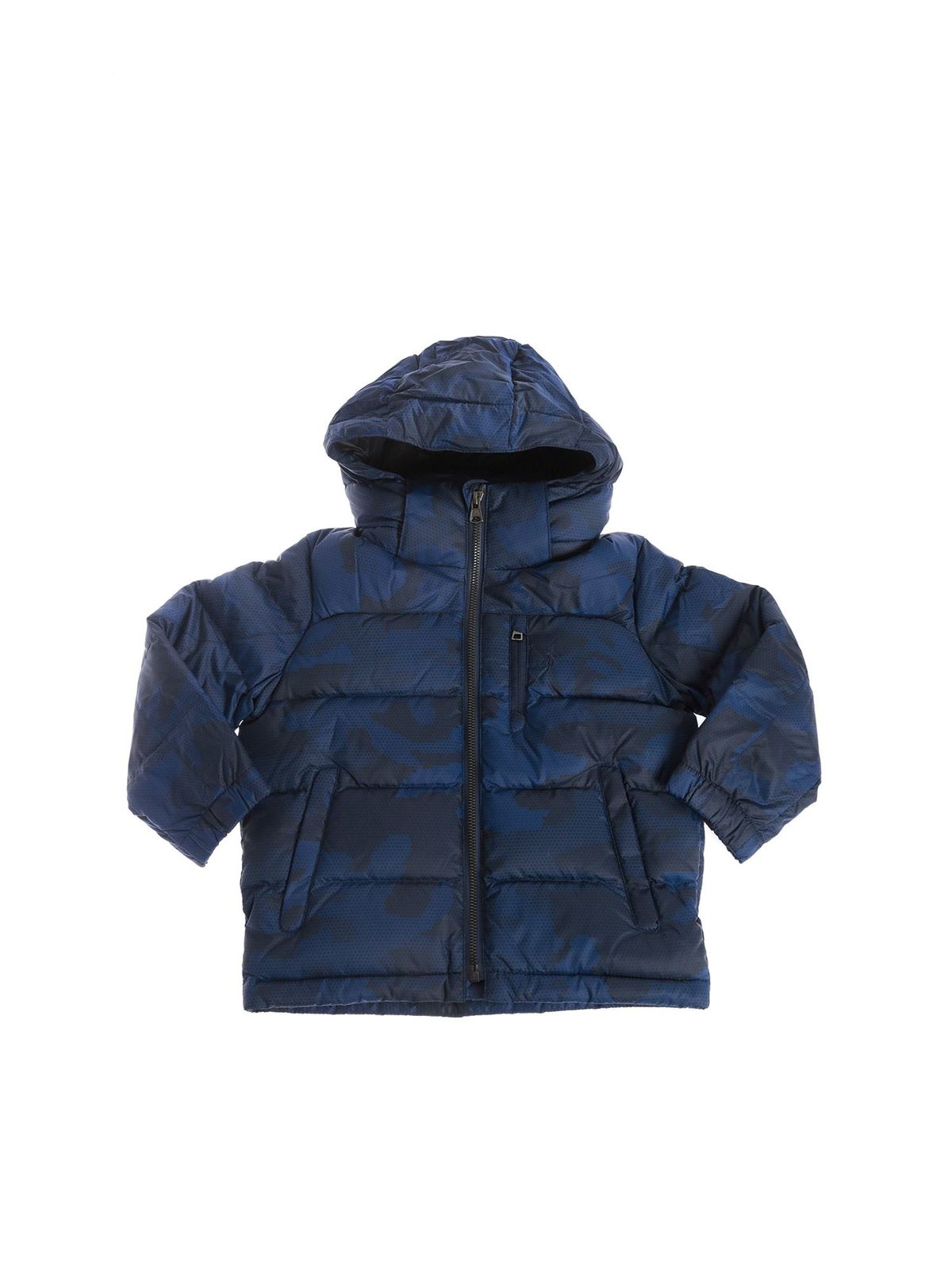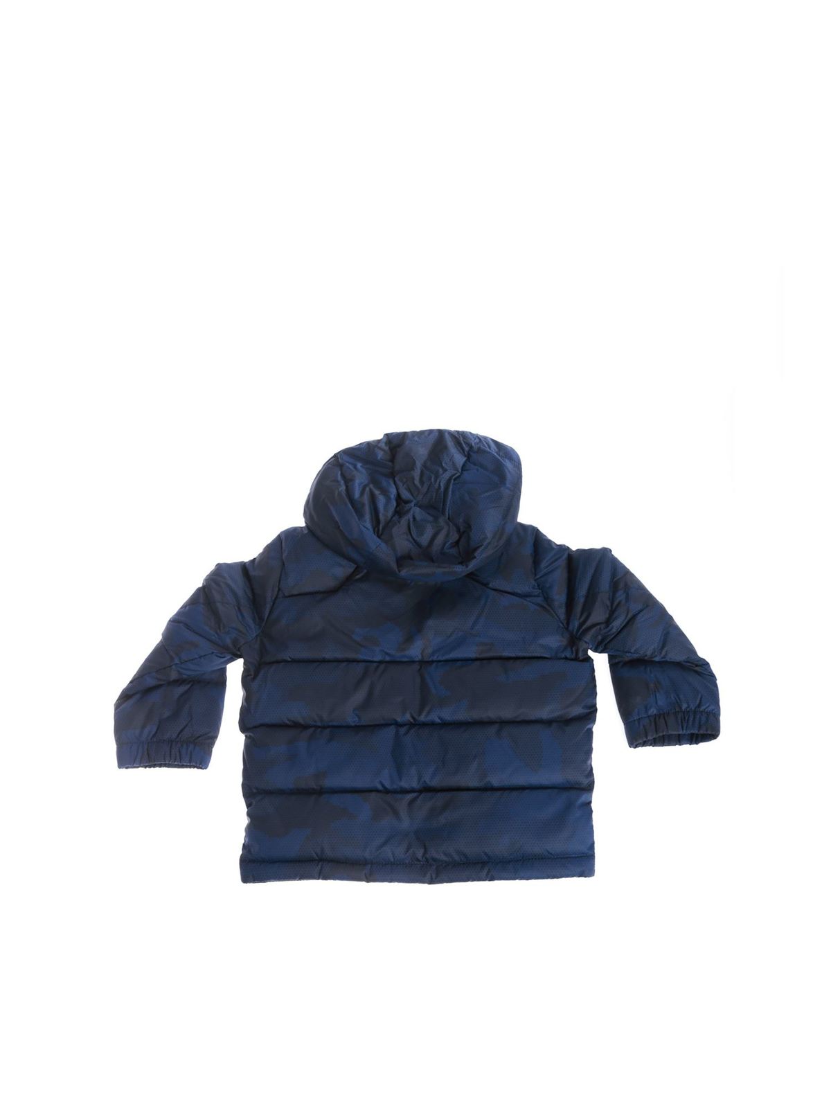 - Camouflage hooded down jacket in blue