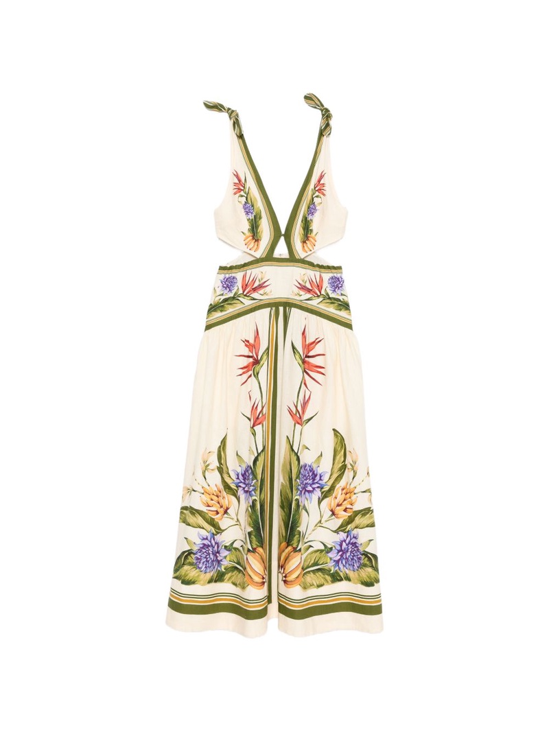 FARM RIO(ファーム リオ)は、1997年にリオデジャネイロでカティア バロス(Kátia Barros)とマルセロ バストス(Marcello Bastos)によって創業されたブランドです。プリントと色彩豊かなクリエイションは、地元のマーケットのブースから始まったブランドの設立に由来します。 デザインの特徴は、ブラジルの熱帯植物、鮮やかな花々、オウムなどの動物をモチーフにしたプリントとその豊かな創造性です。毎年700以上のオリジナルプリントを制作し、それを4,500以上のスタイルに落とし込むことで、多様性と遊び心を衣服に宿しています。また、シルエットやサイズ展開にも配慮し、着る人が自由に選べるデザインを目指しており、着る人を意識した服作りが大きな特徴です。