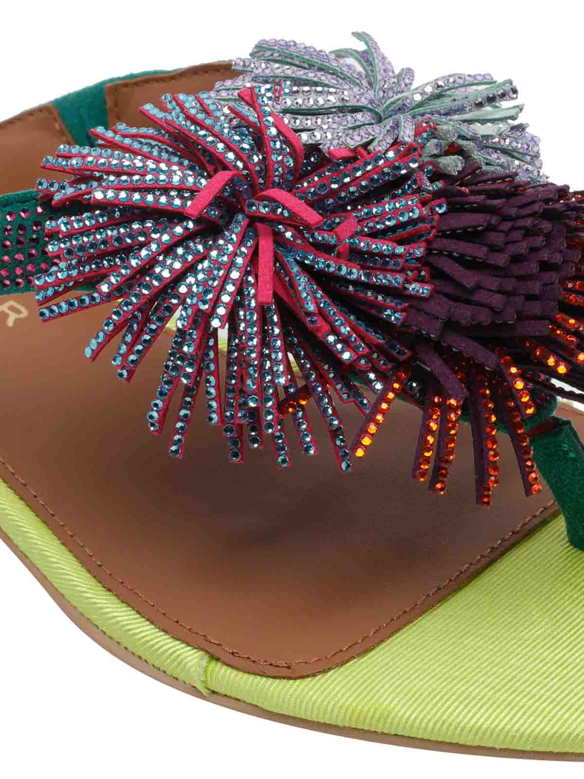 - Metal Pom Pom T-Bar Flat Sandals