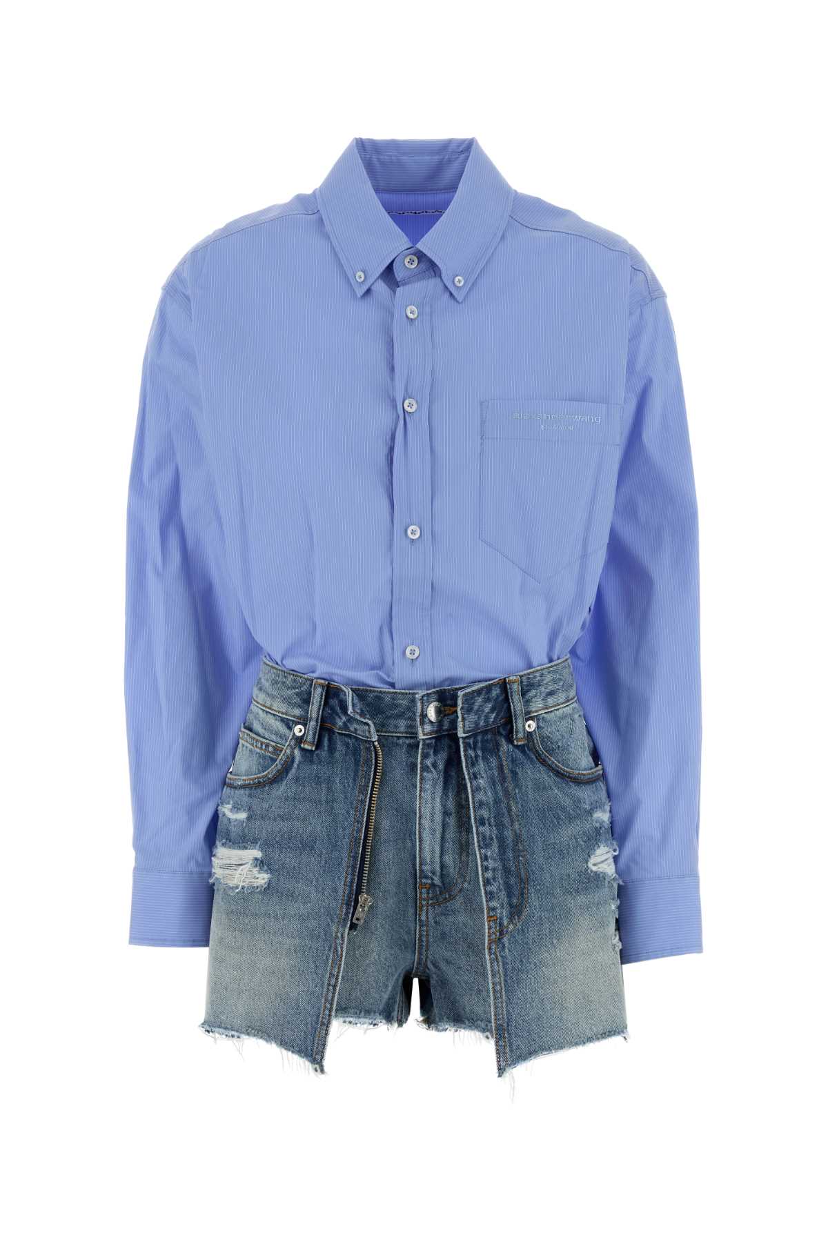 - Embroidered denim and stretch poplin jumpsuit