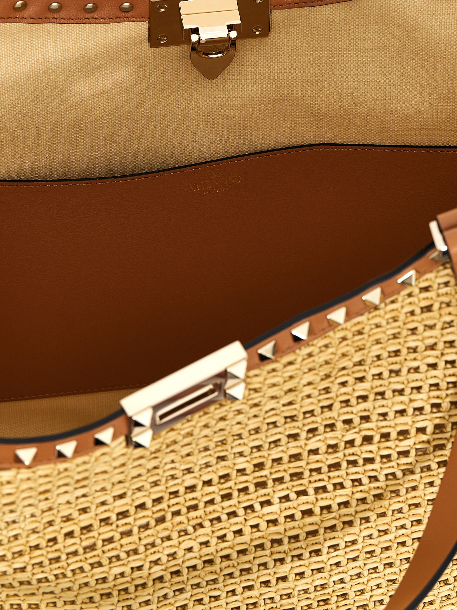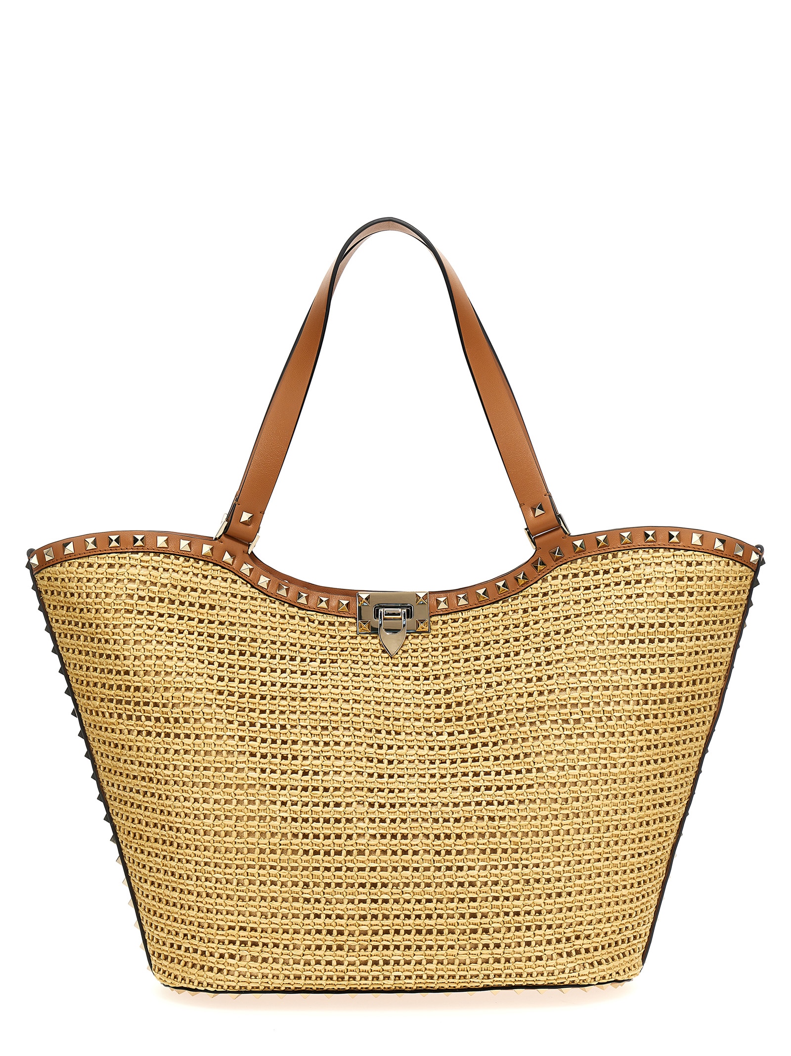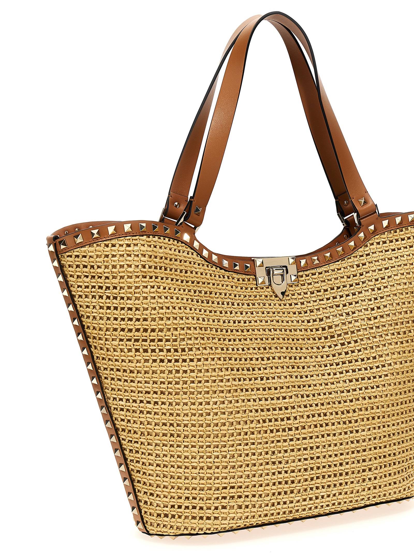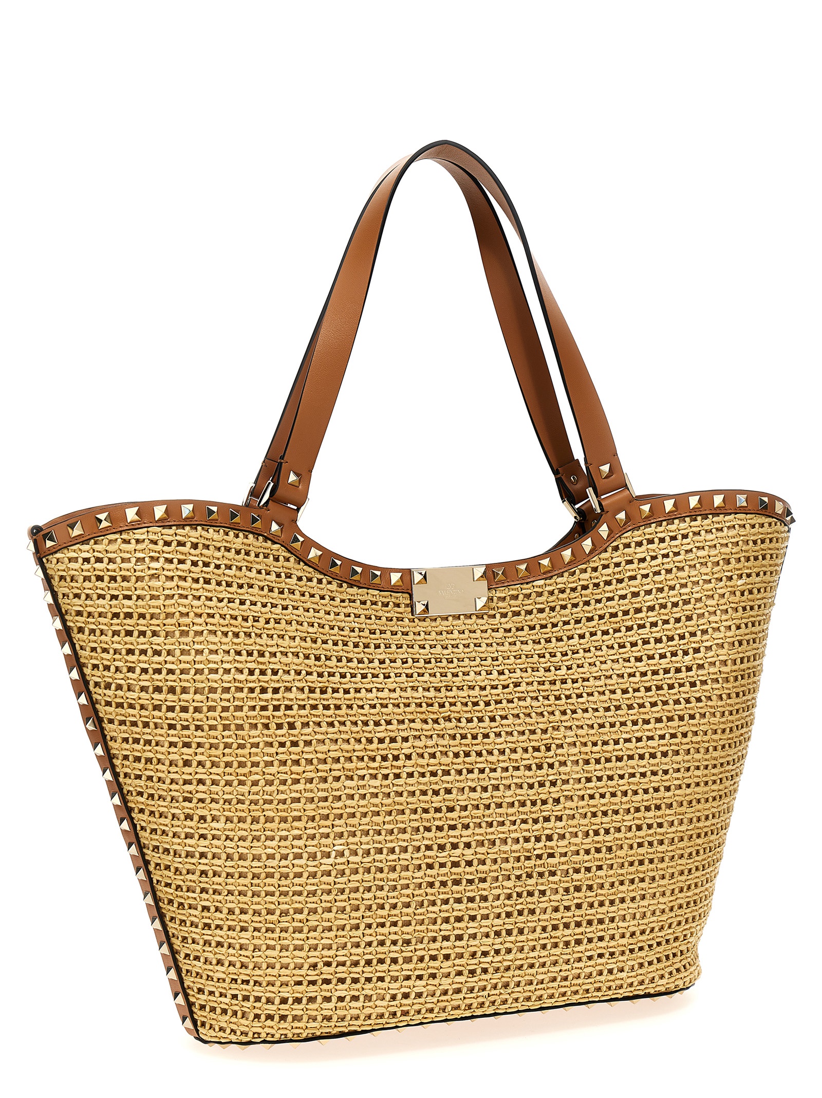 - Valentino Garavani 'Rockstud' raffia shopping bag