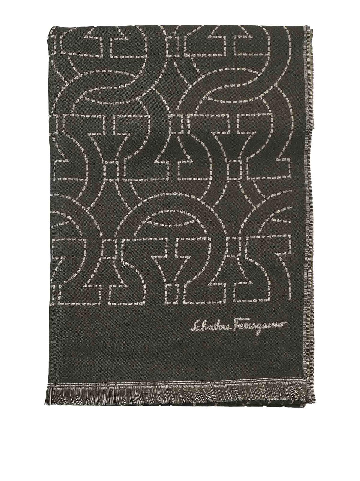 - Wool scarf with gancini logo