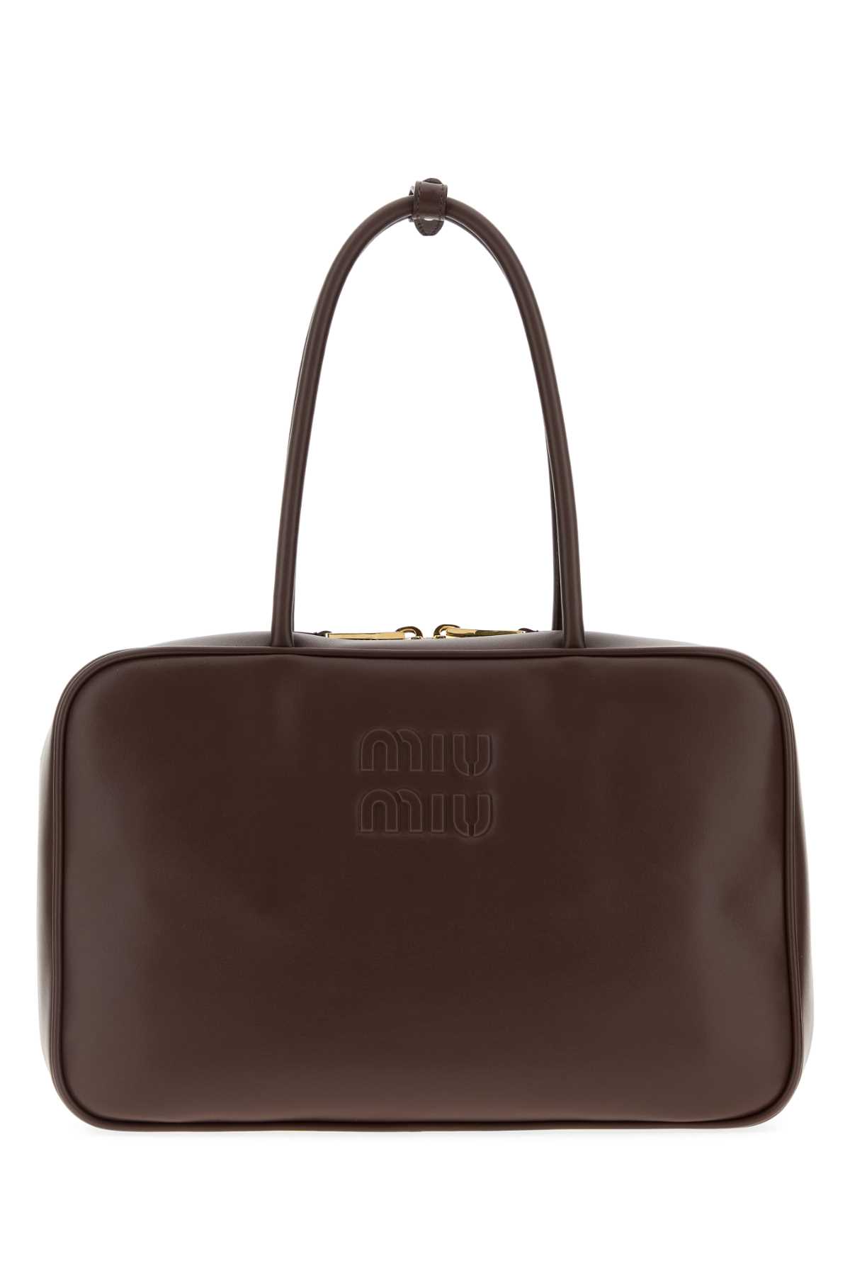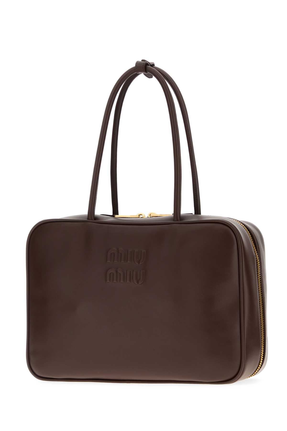 - Dark brown leather handbag
