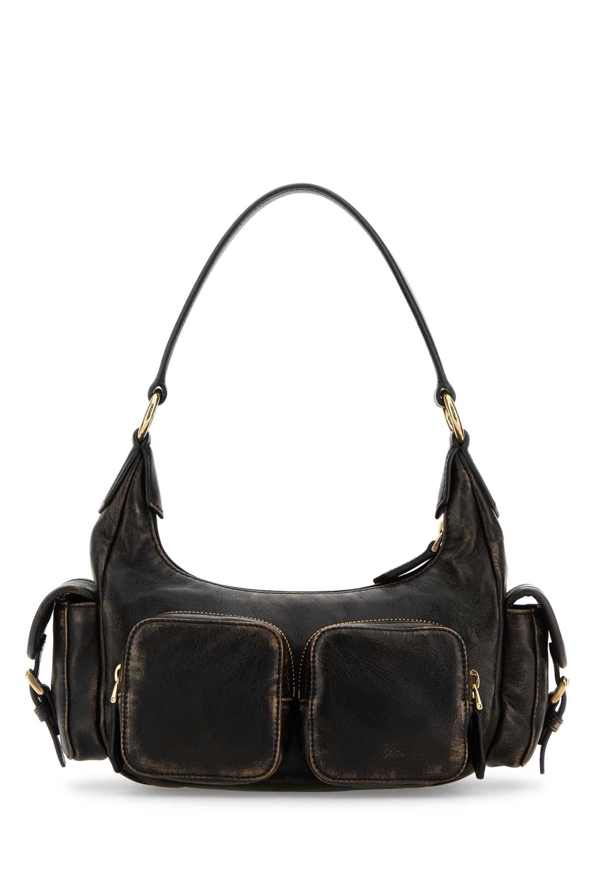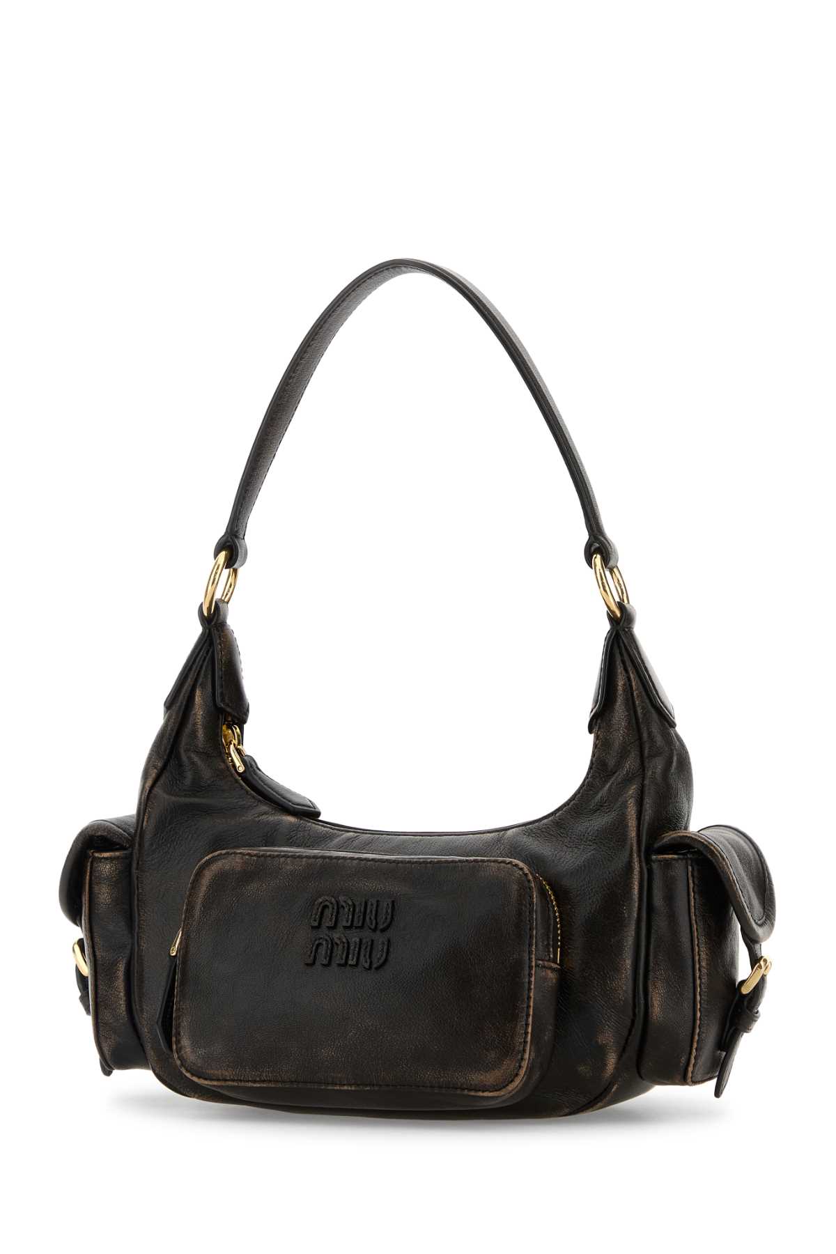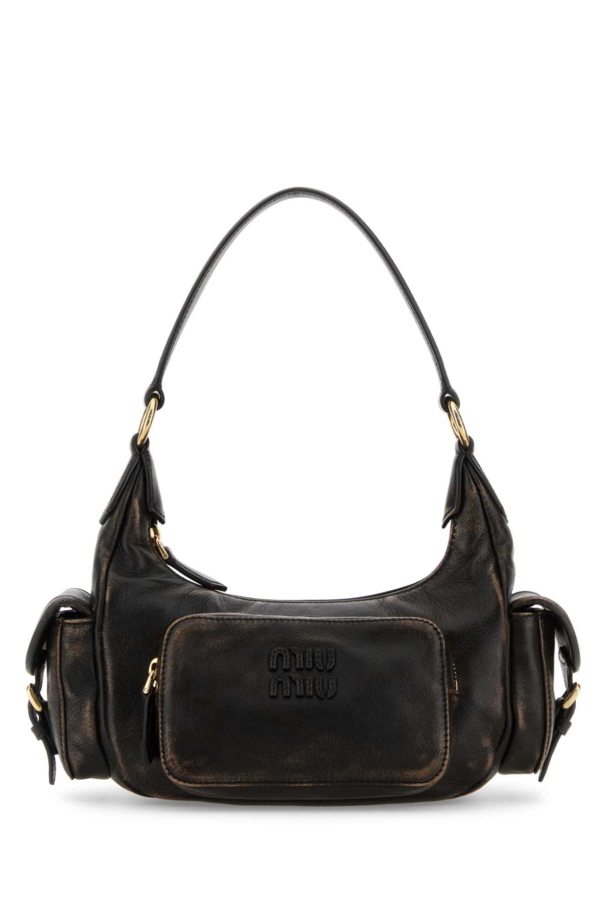 - Dark brown nappa leather shoulder bag