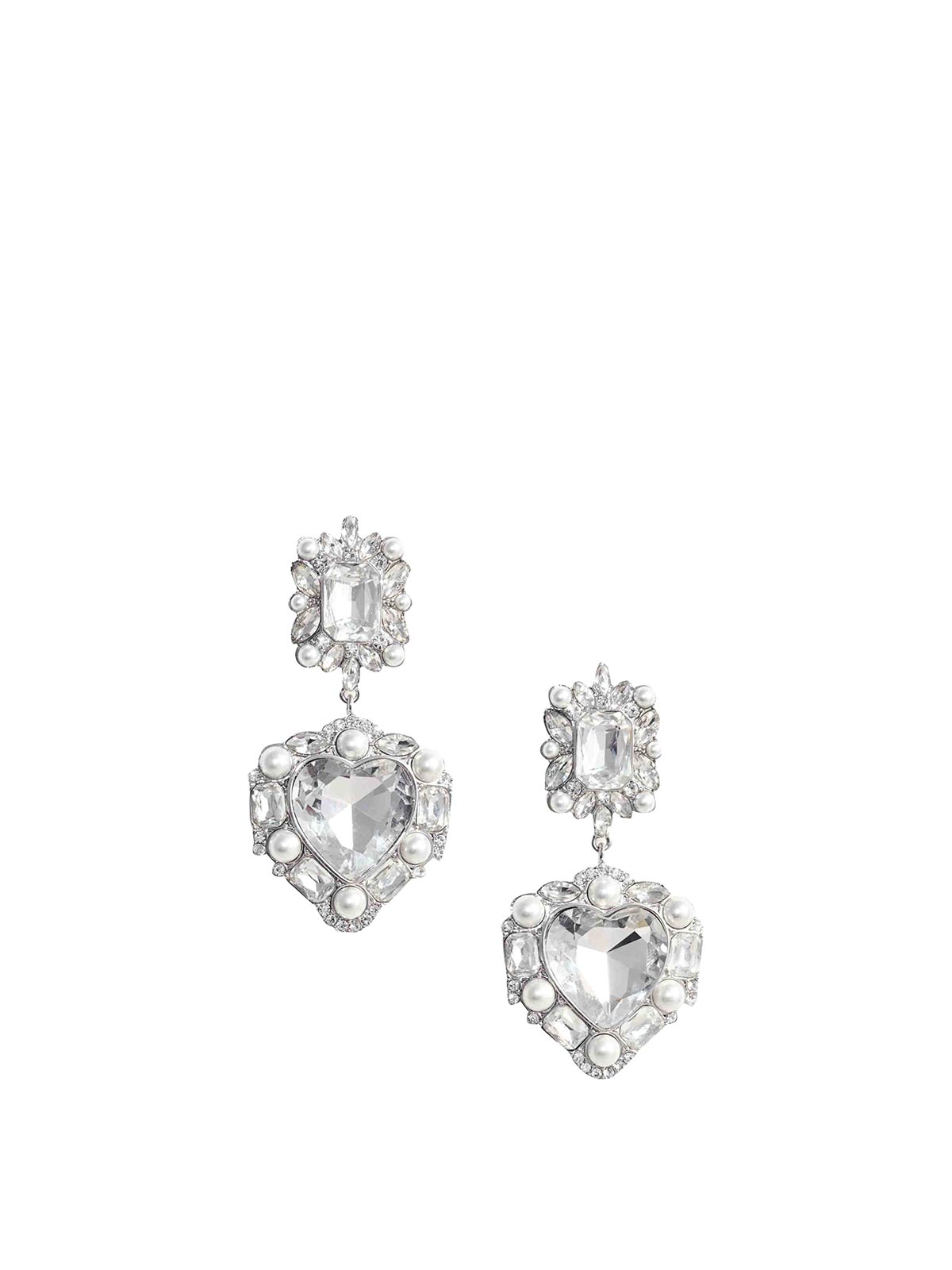 - Crystal Pearl Heart Earrings