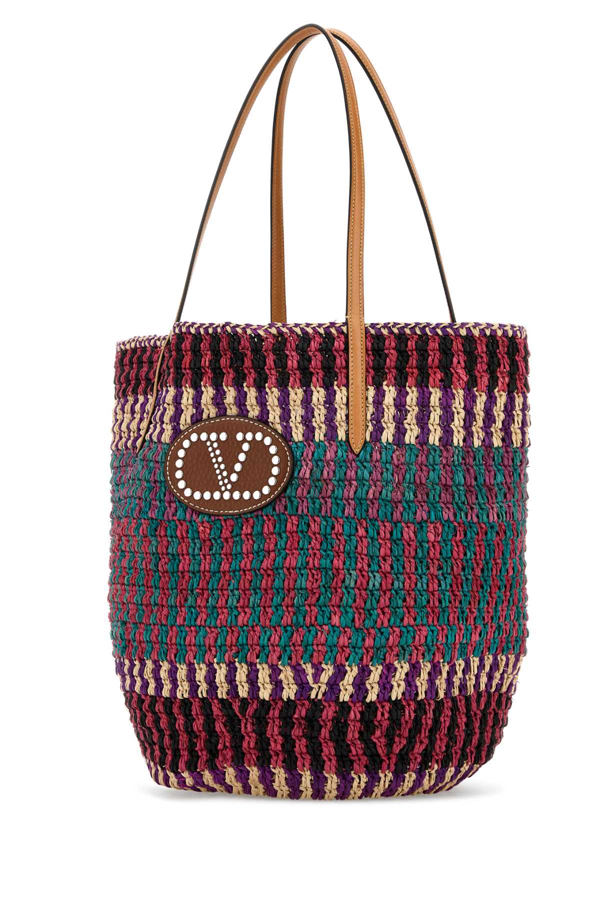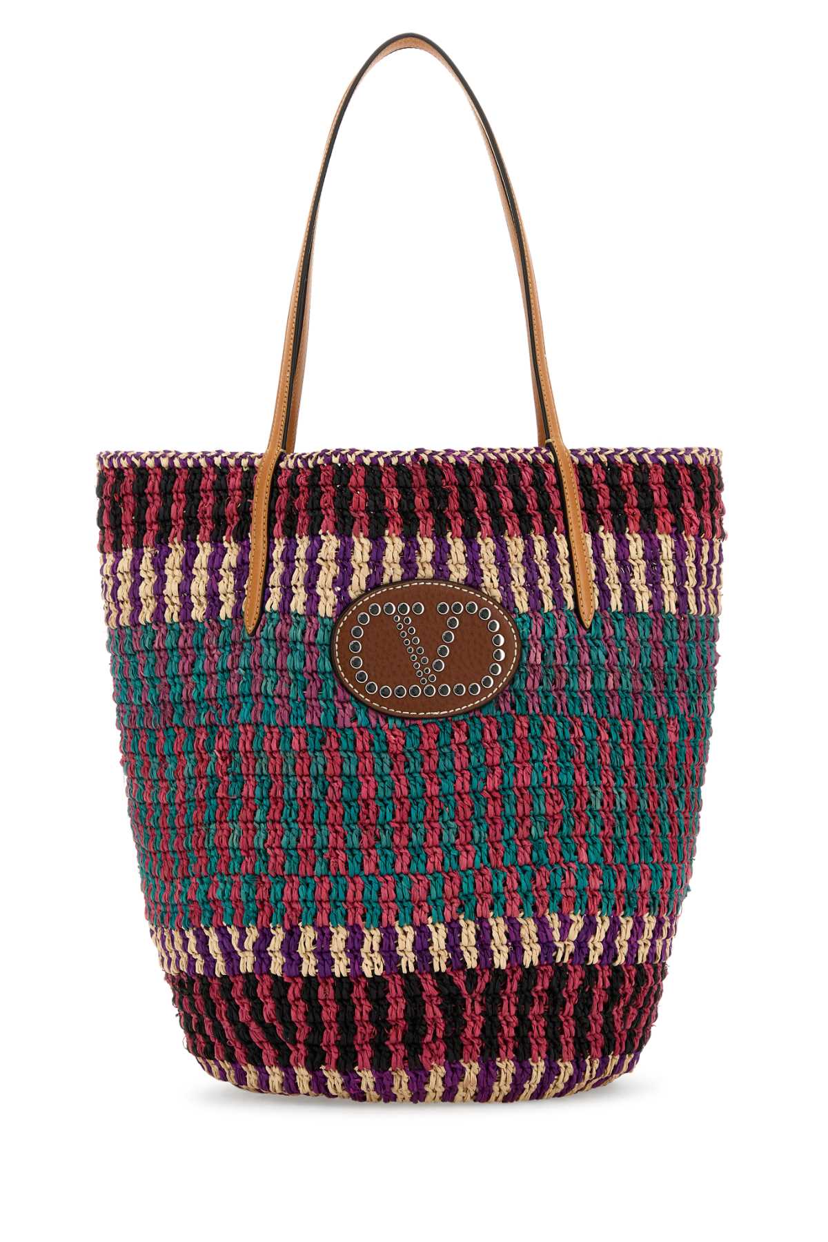 - Multicolor raffia VLogo shopping bag