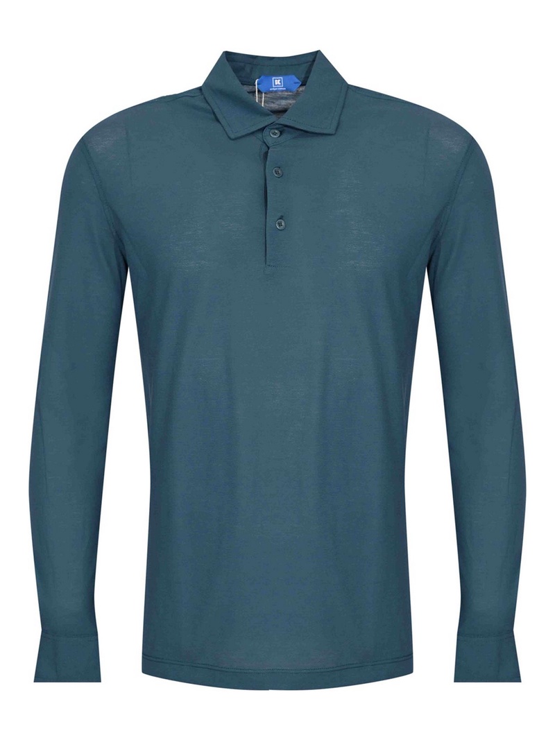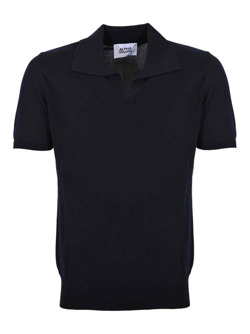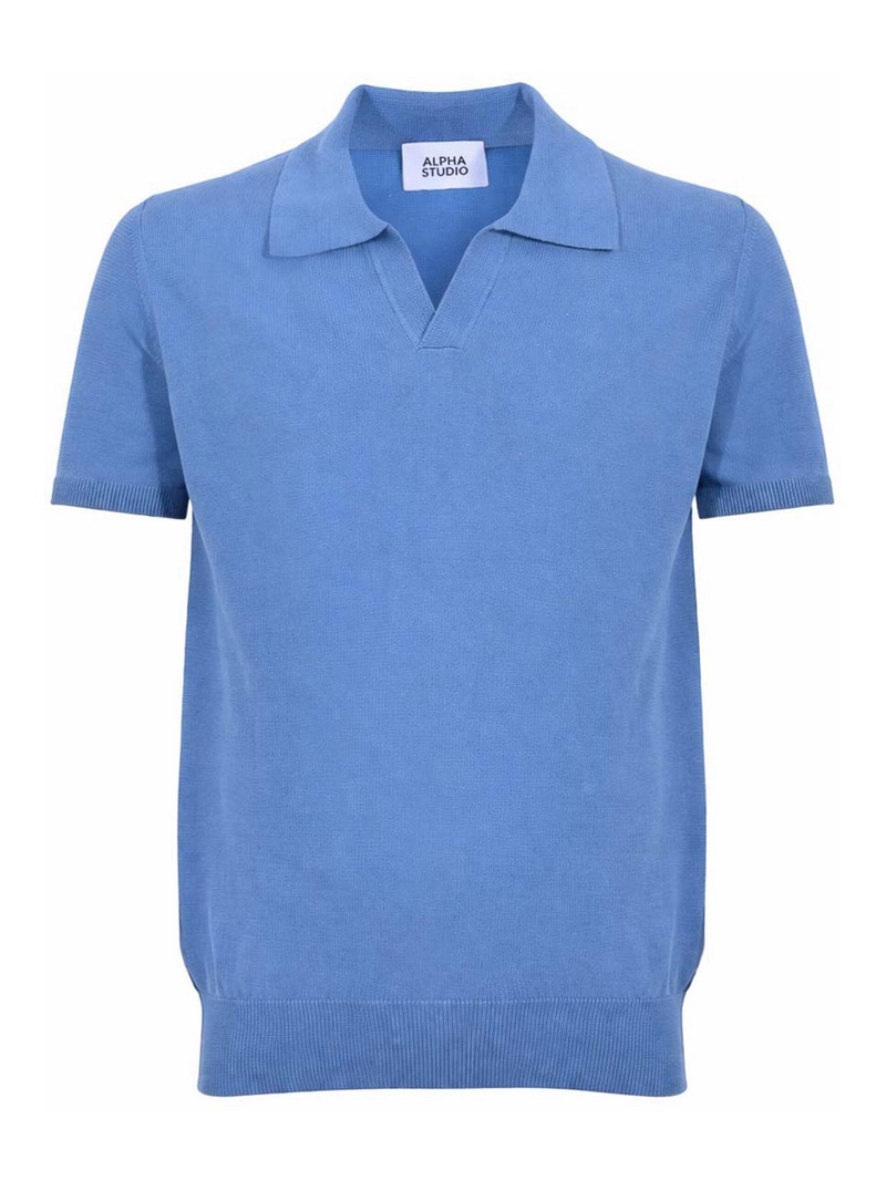 Two-button cotton polo shirt with blue logo 710536856484