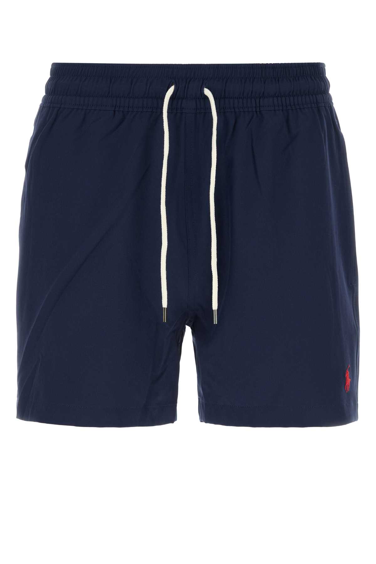 Navy blue stretch polyester swimming shorts 710B16721004