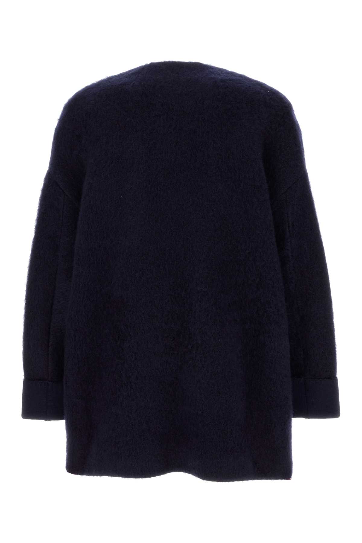 - Navy blue stretch wool blend cardigan
