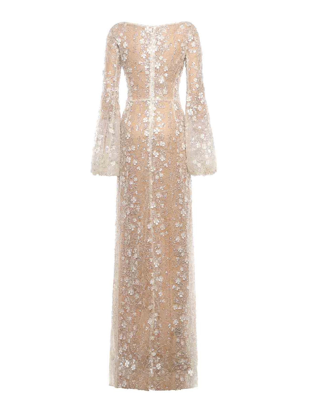 - Long Lace Dress With 3D Flowers