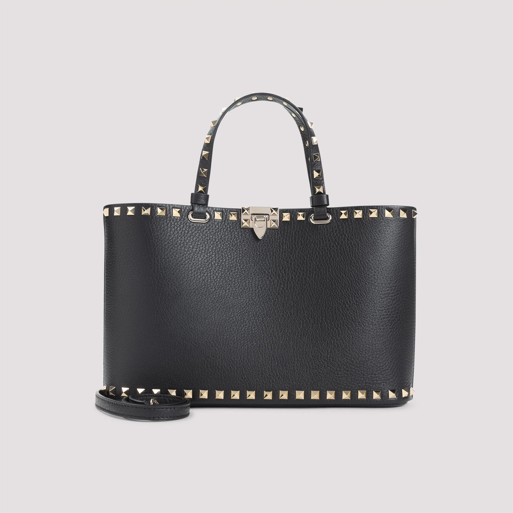 - Black leather Rockstud handbag