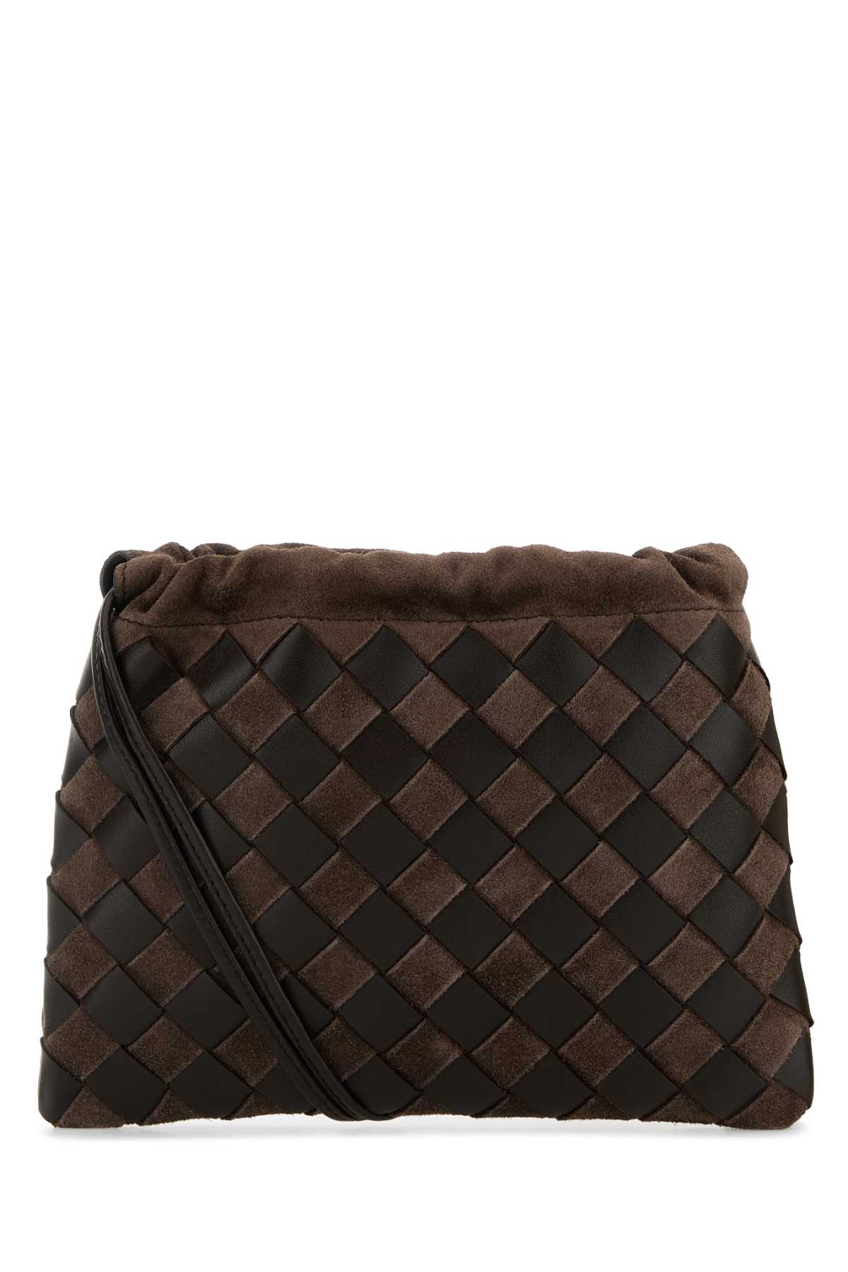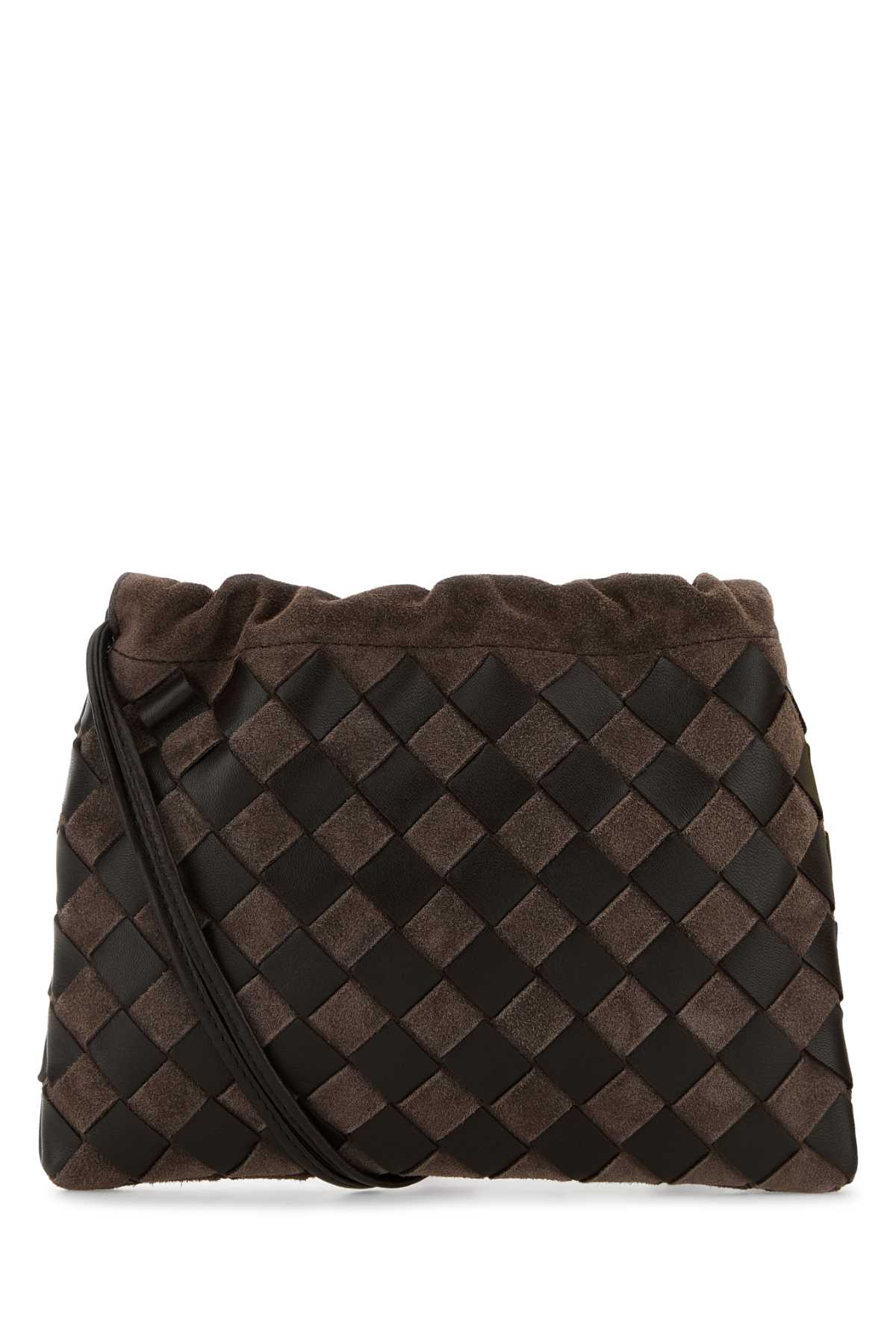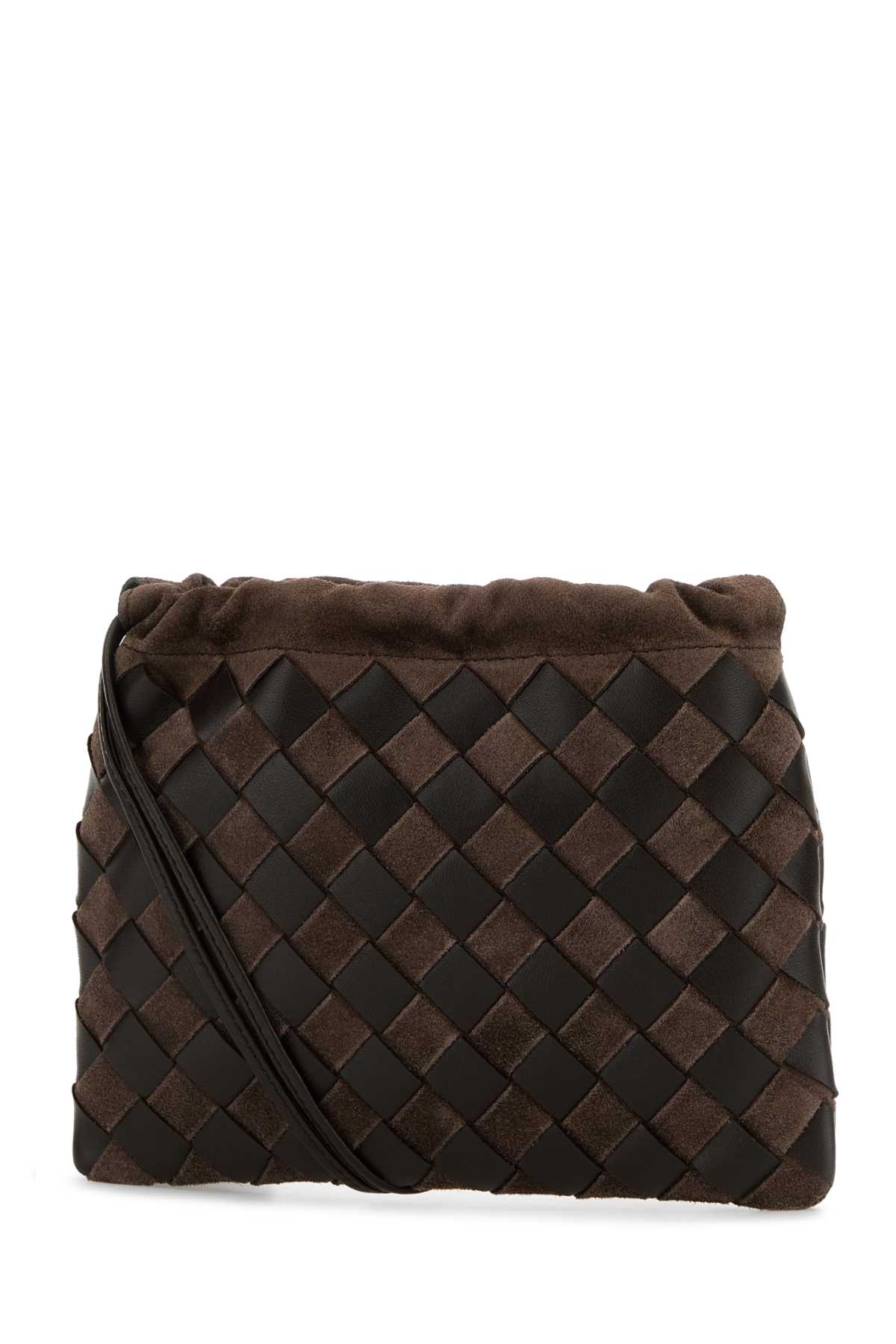 - Brown leather and suede crossbody bag