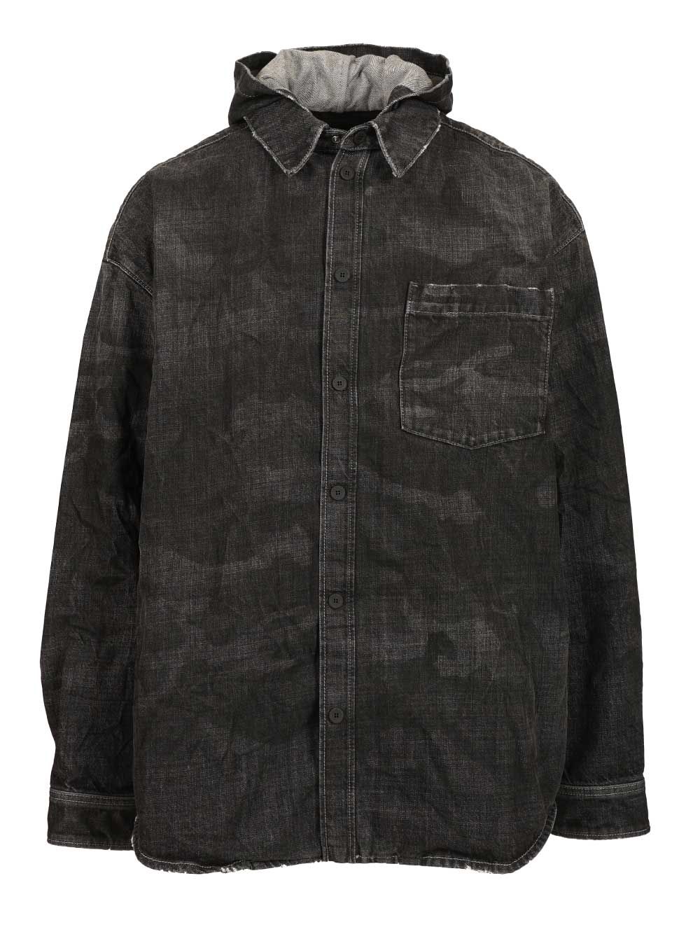 - Denim parka with hood
