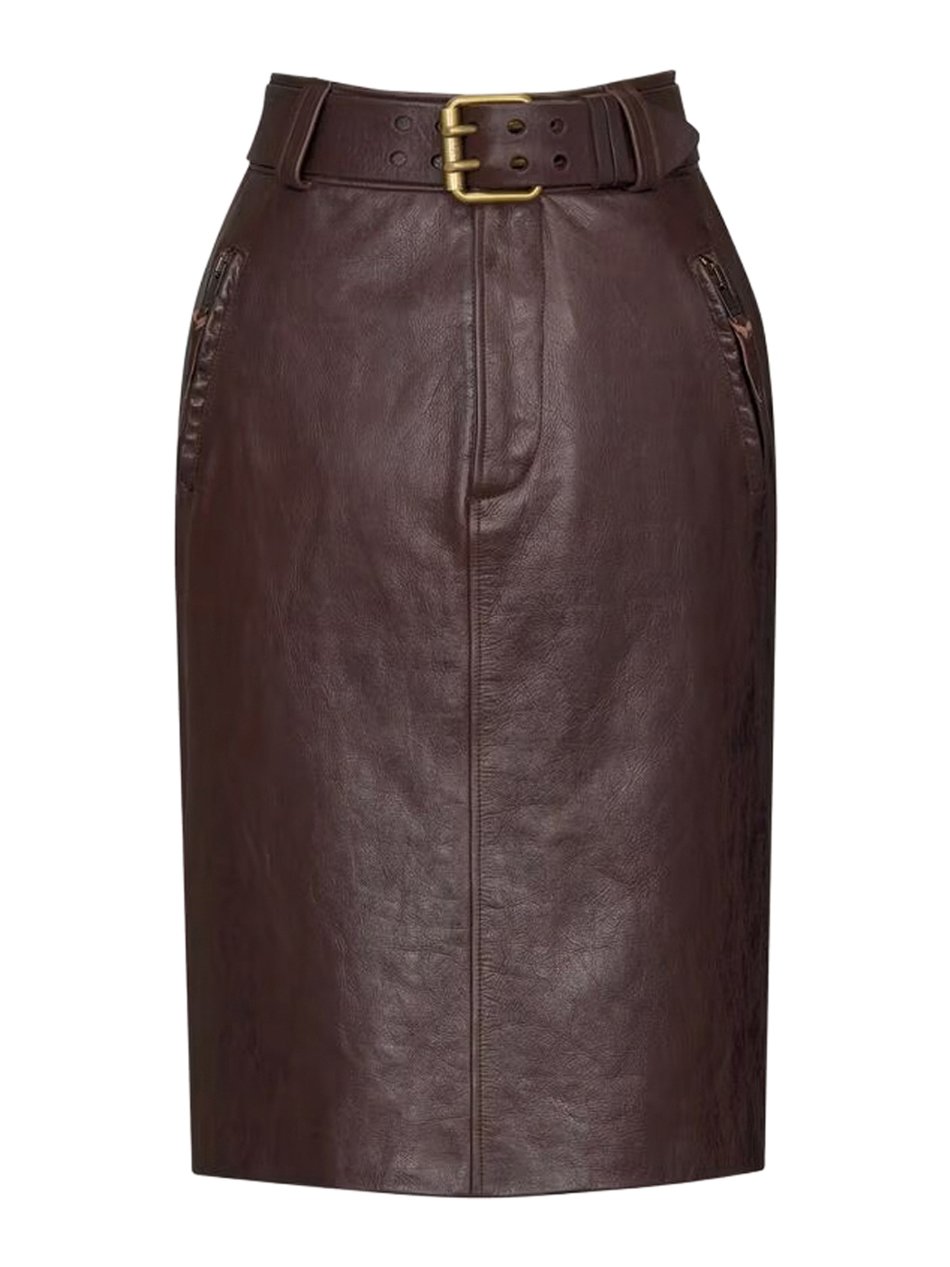 - BELTED PENCIL SKIRT IN CREASED LEATHER