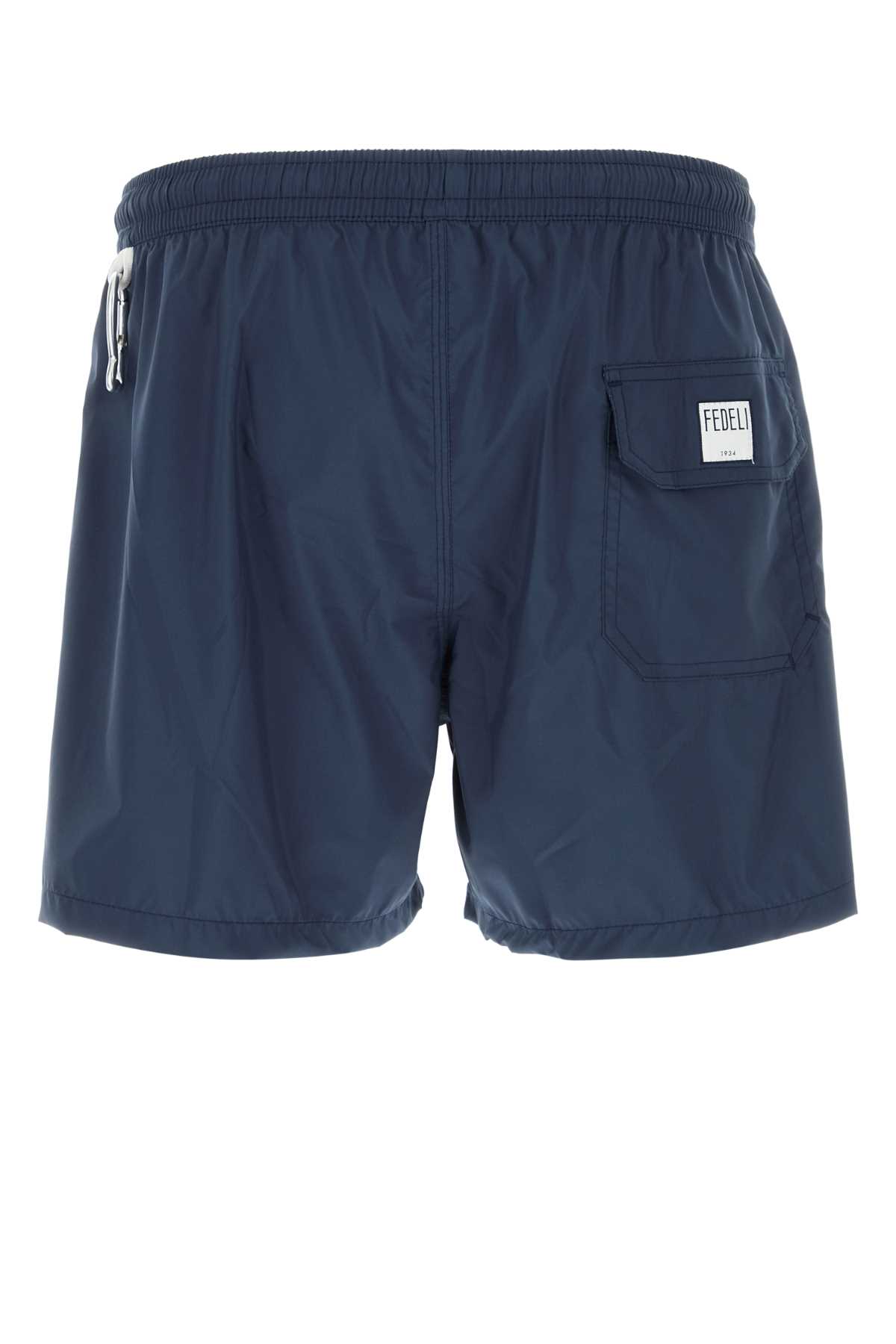 - Navy blue polyester swimming shorts