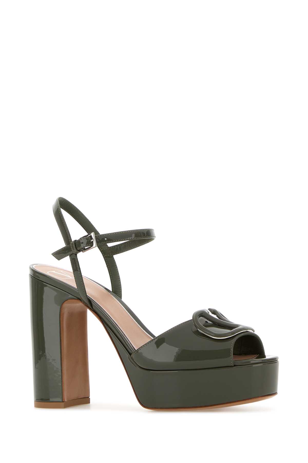 - Army green leather VLogo Signature sandals