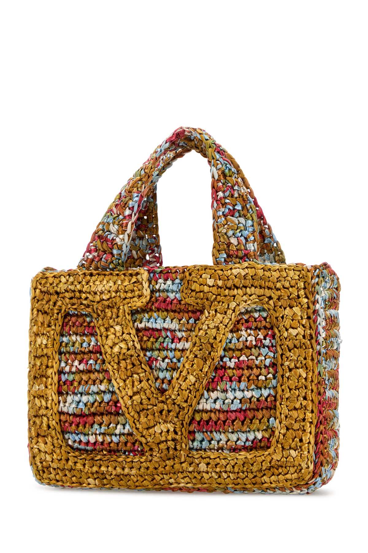- Multicolor raffia small VLogo Signature handbag