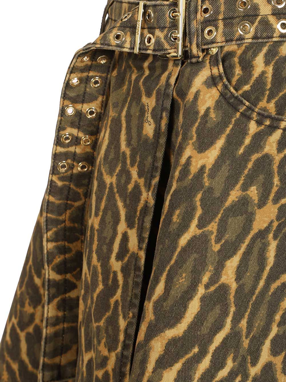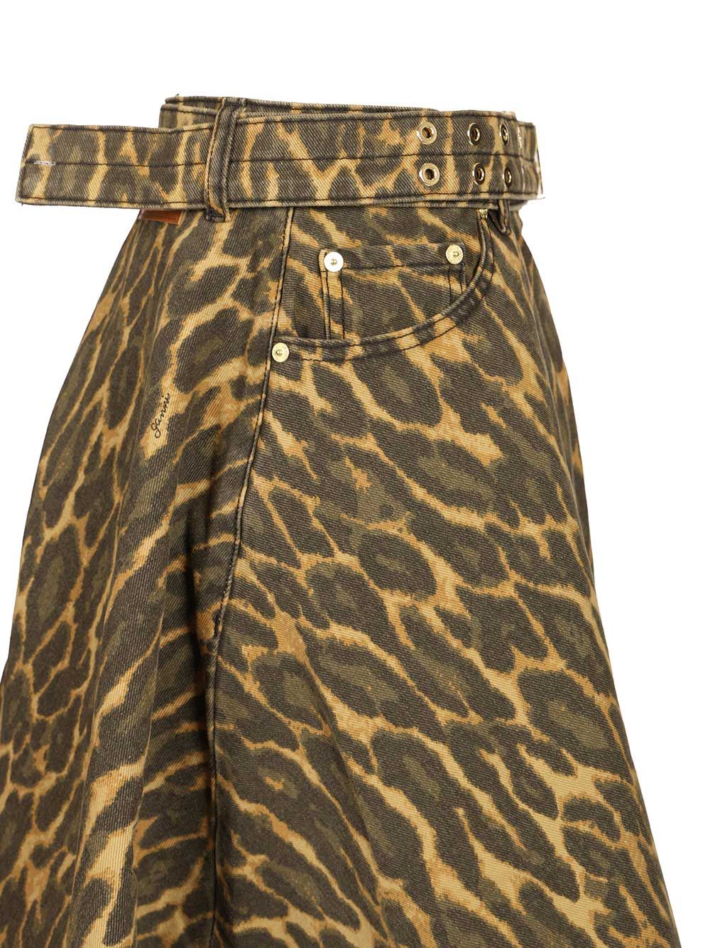- Print Denim Wrap Midi Skirt