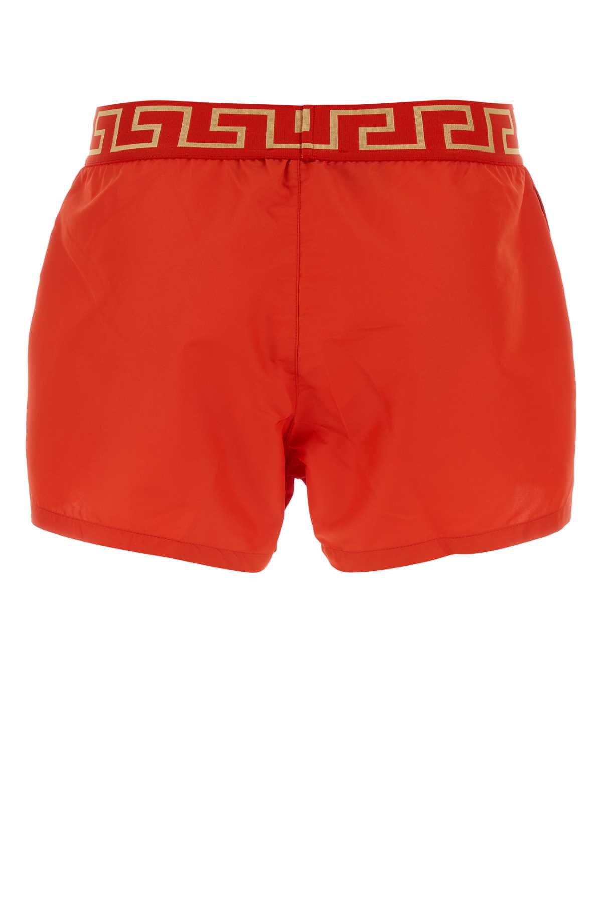 - Red polyester swimming shorts