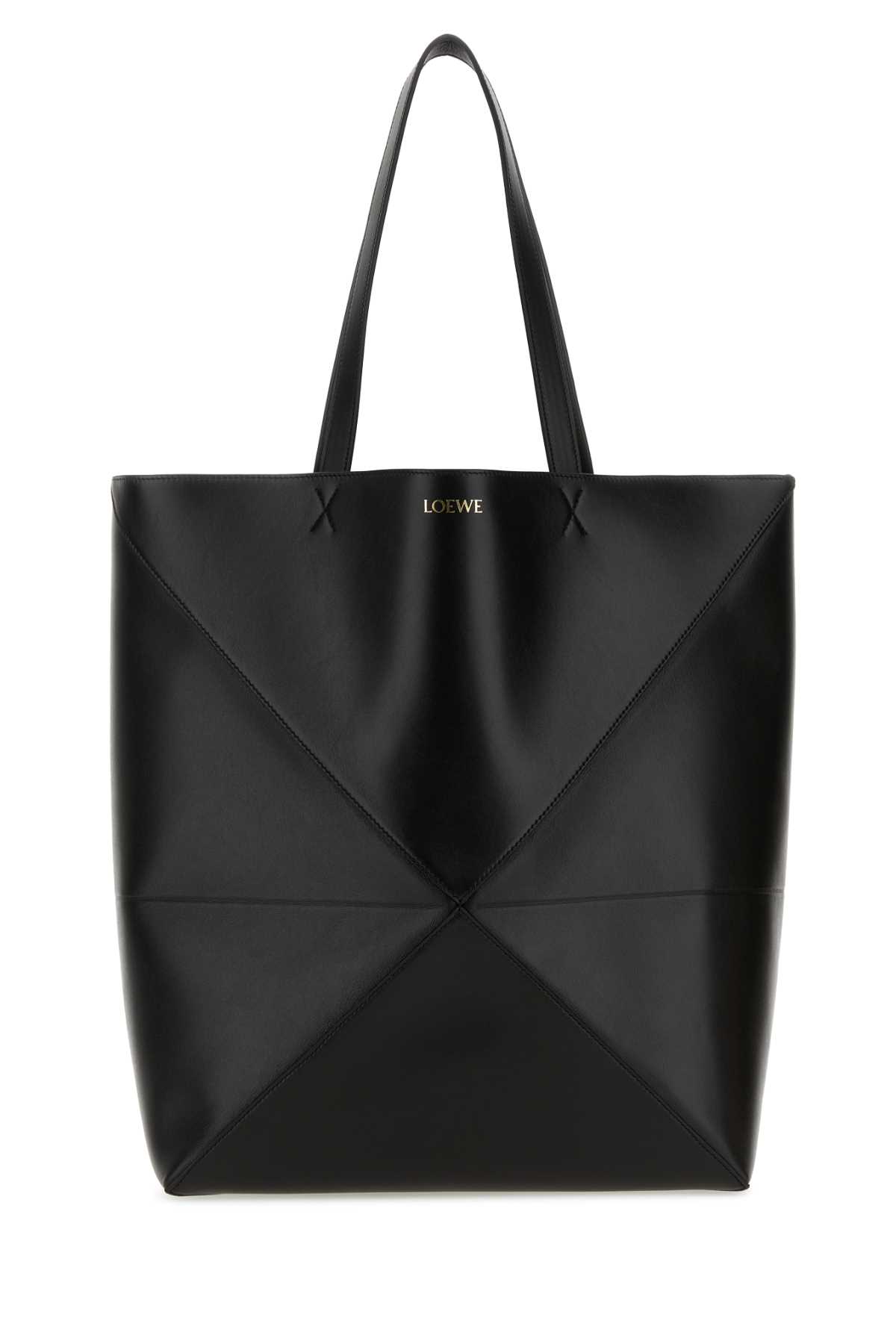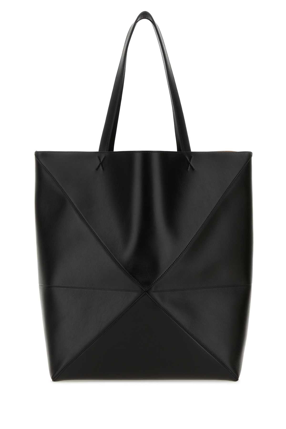 - Black leather large Puzzle Fold shopping bag