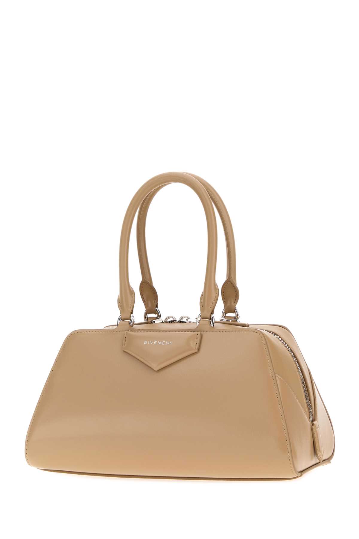 - Beige leather small Antigona East-West handbag