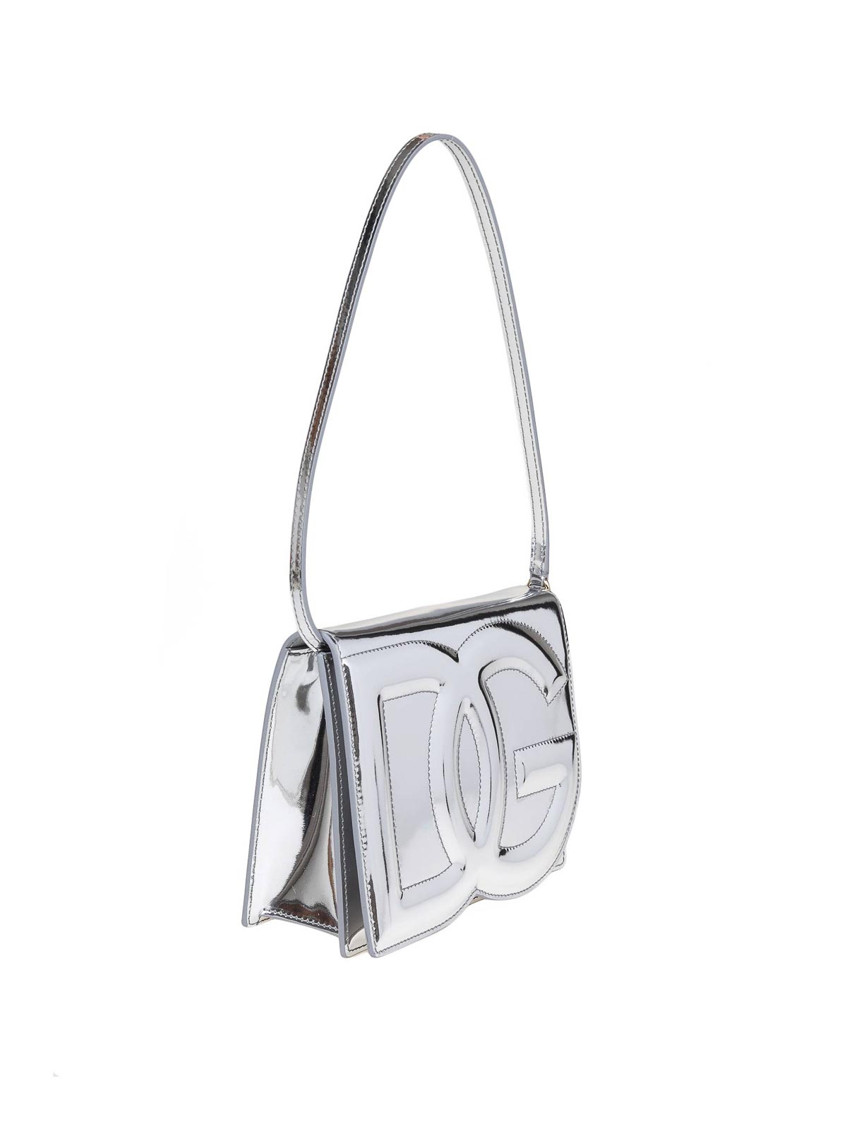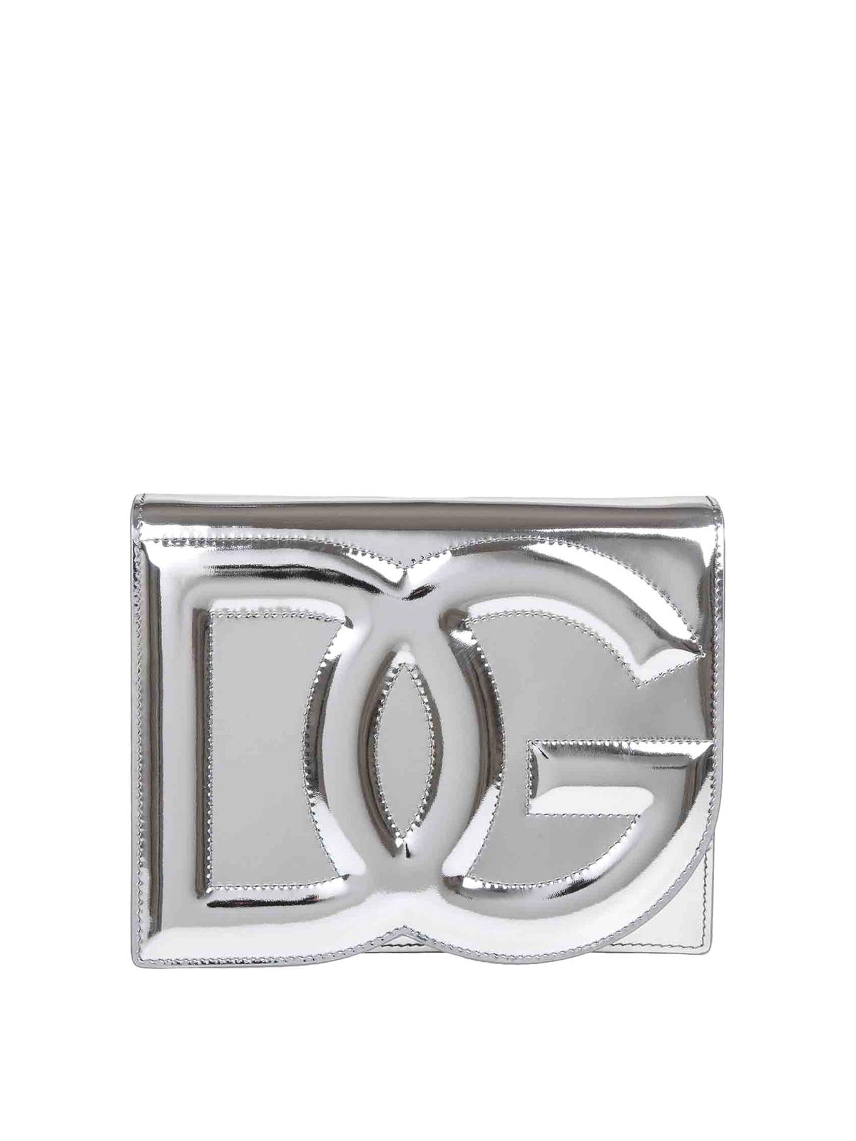 - Silver crossbody bag in laminated leather