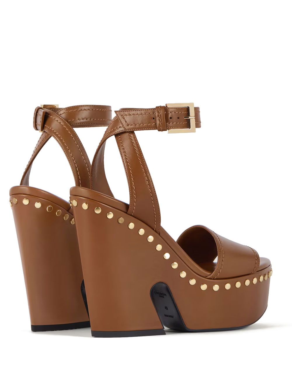 - CLOG LEATHER PLATFORM SANDALS WITH STUDS DETAIL