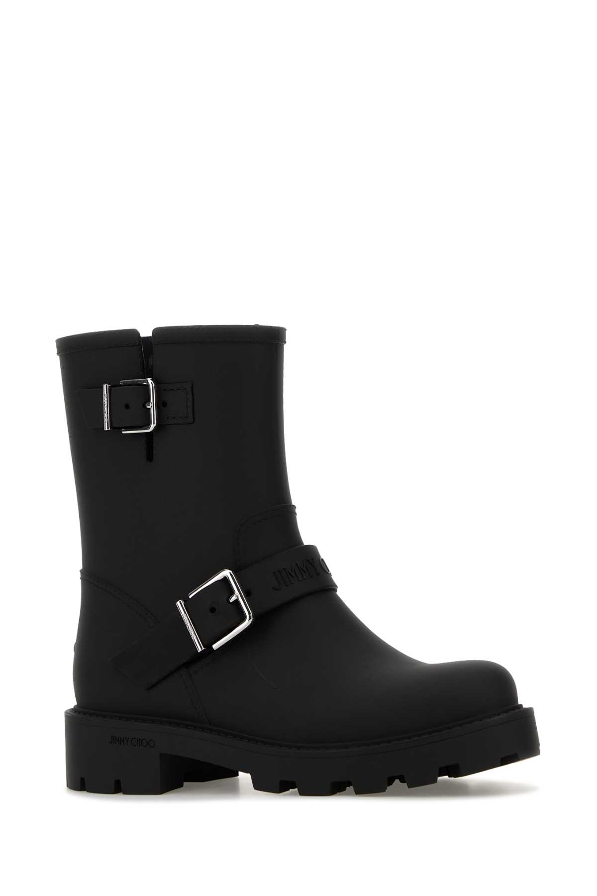 - Black rubber Biker Rain ankle boots