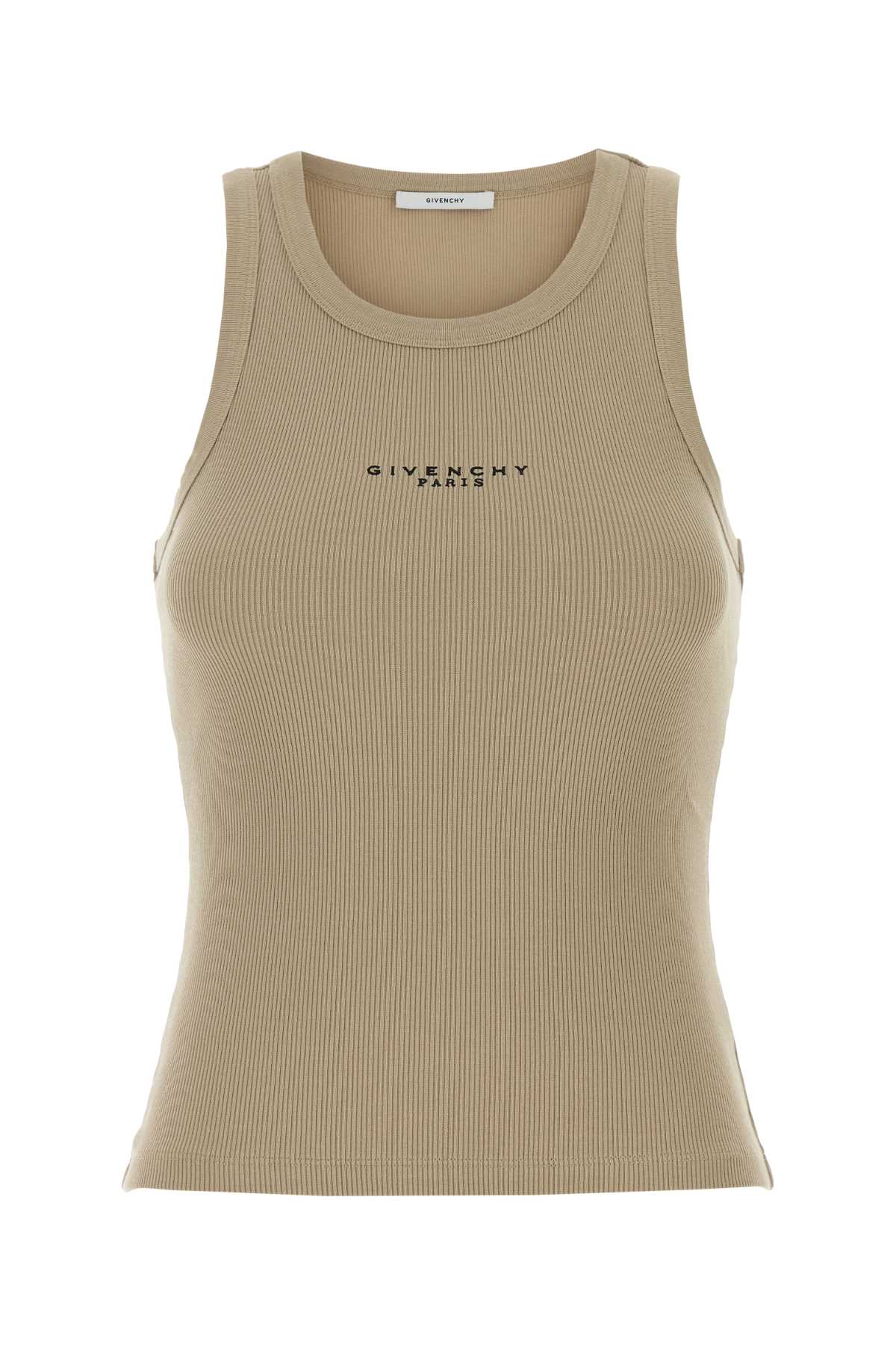 - Beige stretch cotton tank top