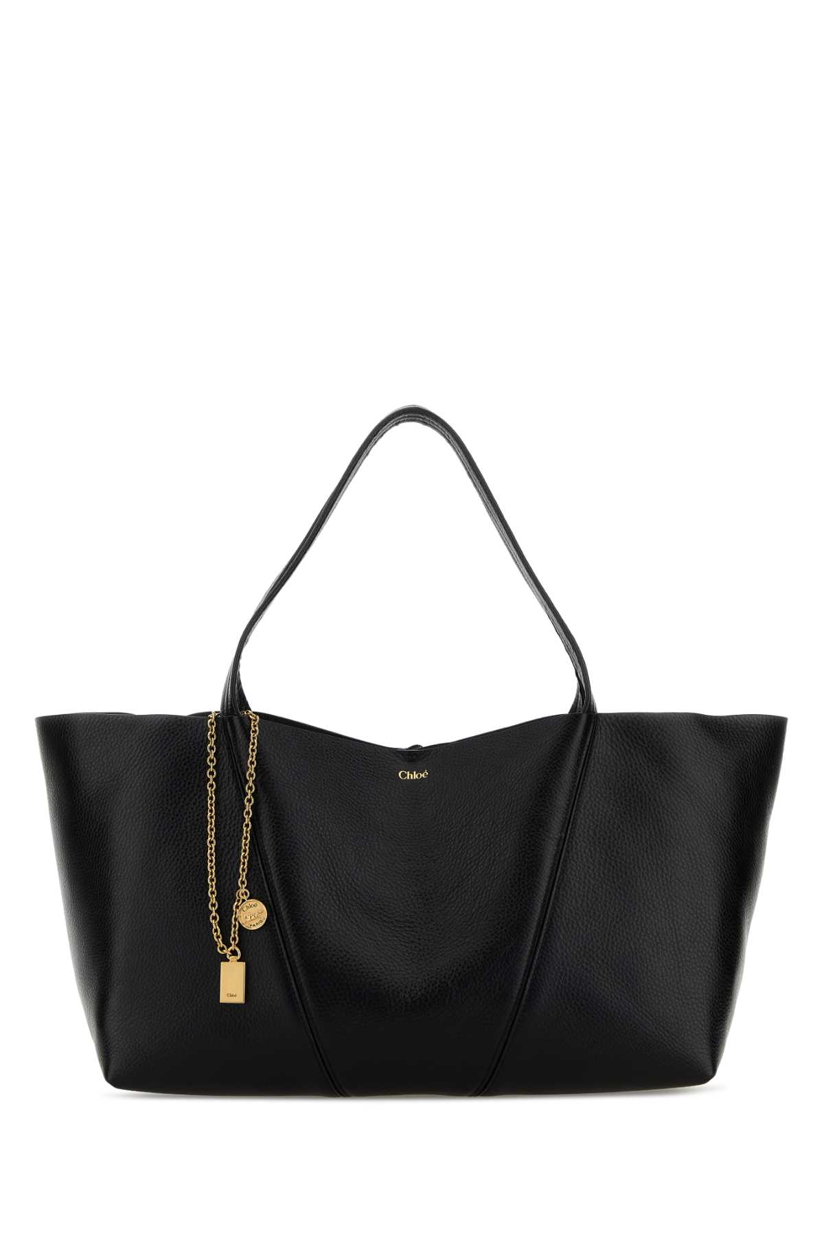 - Black leather East-West Chloé Spin shopping bag