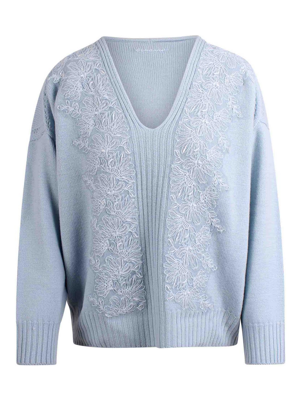 - V-Neck Sweater with Ribbing and Embroidery