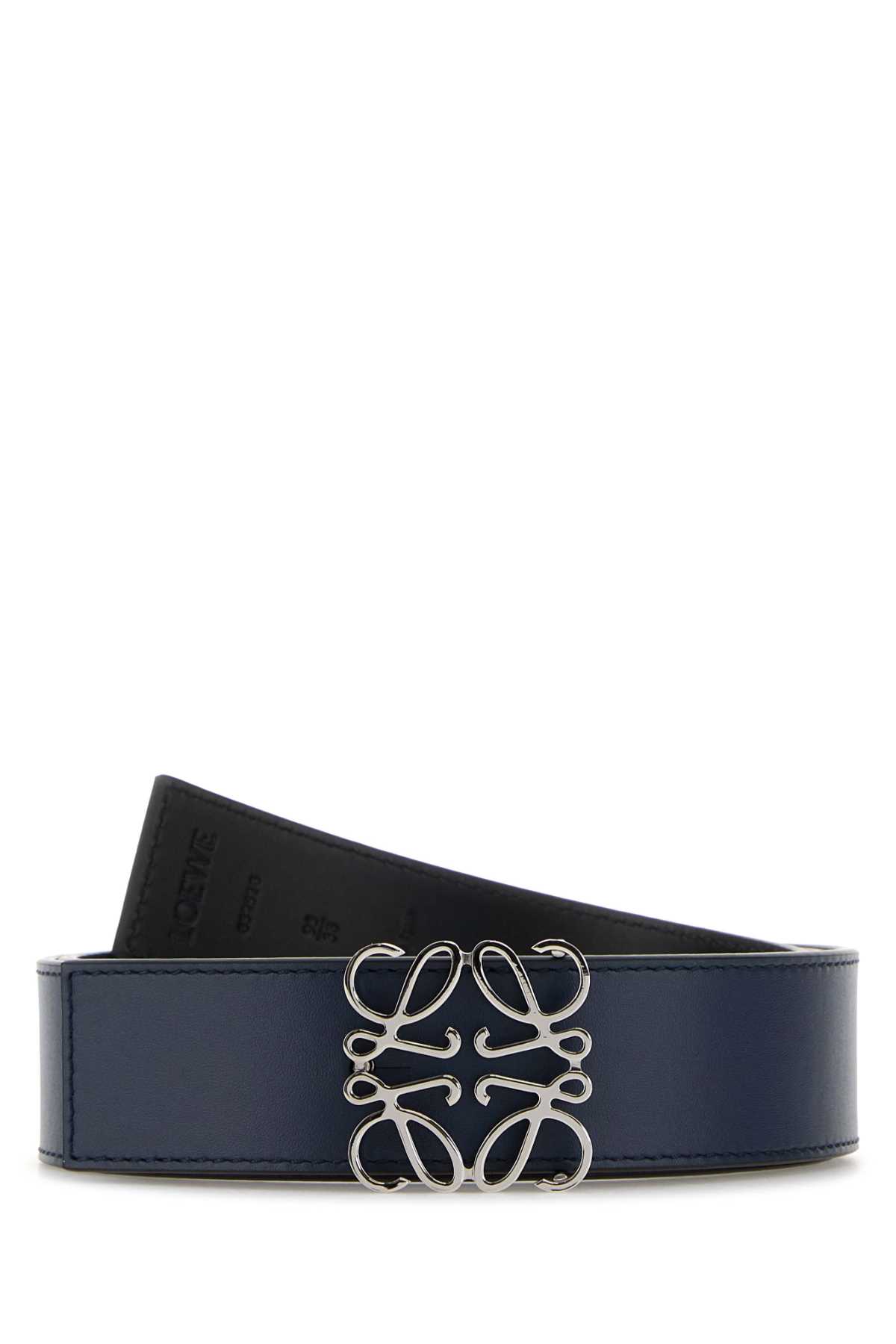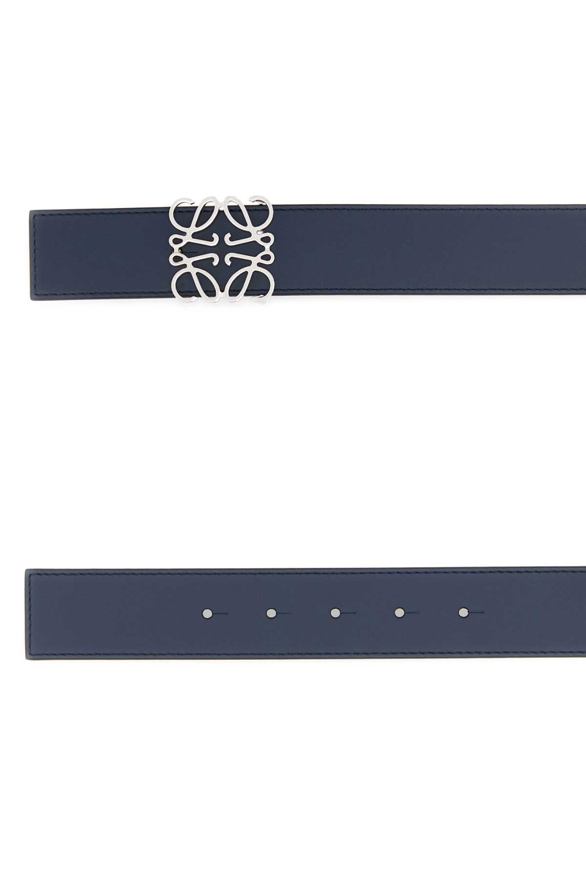 - Navy blue leather reversible Anagram belt