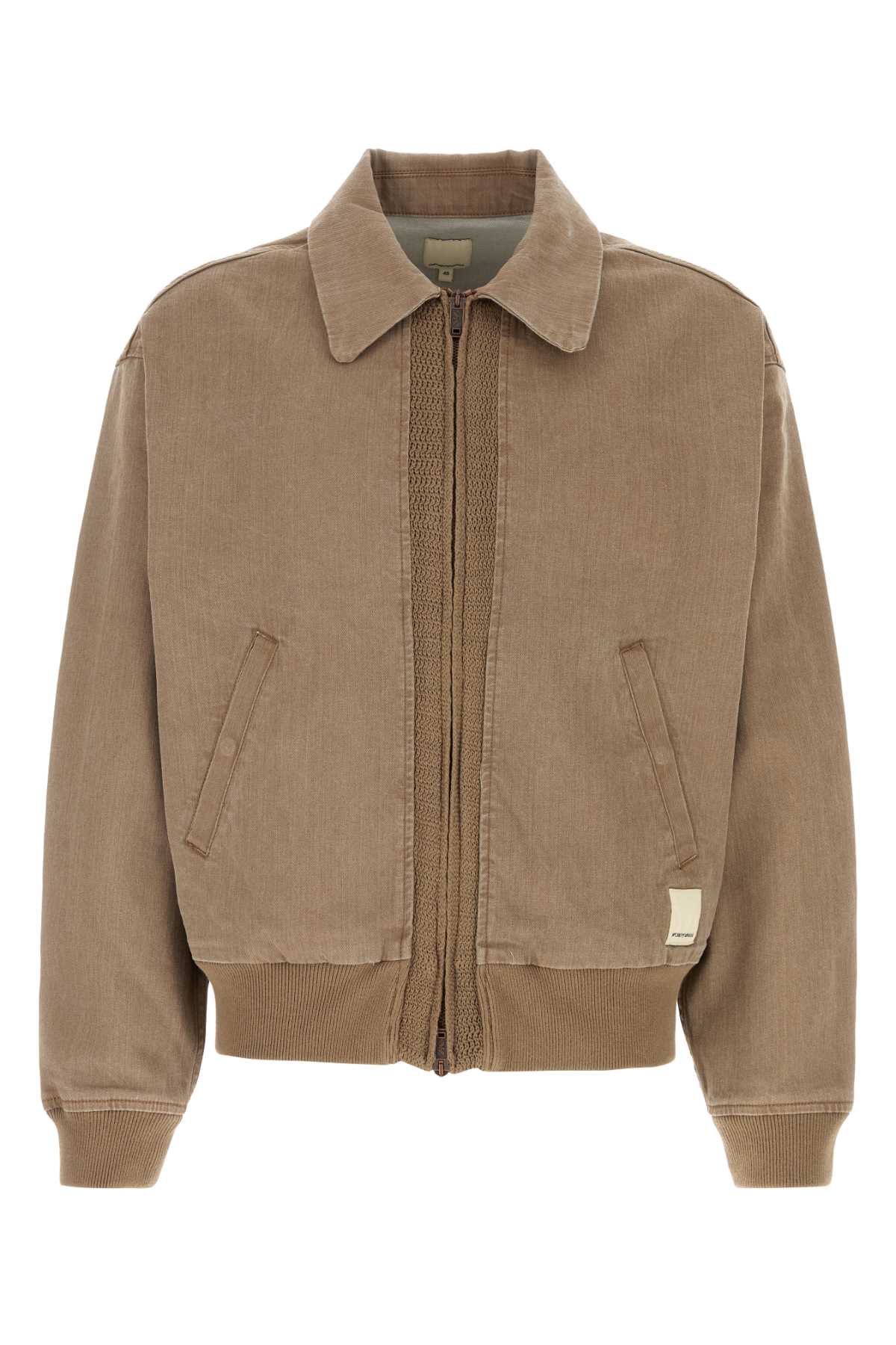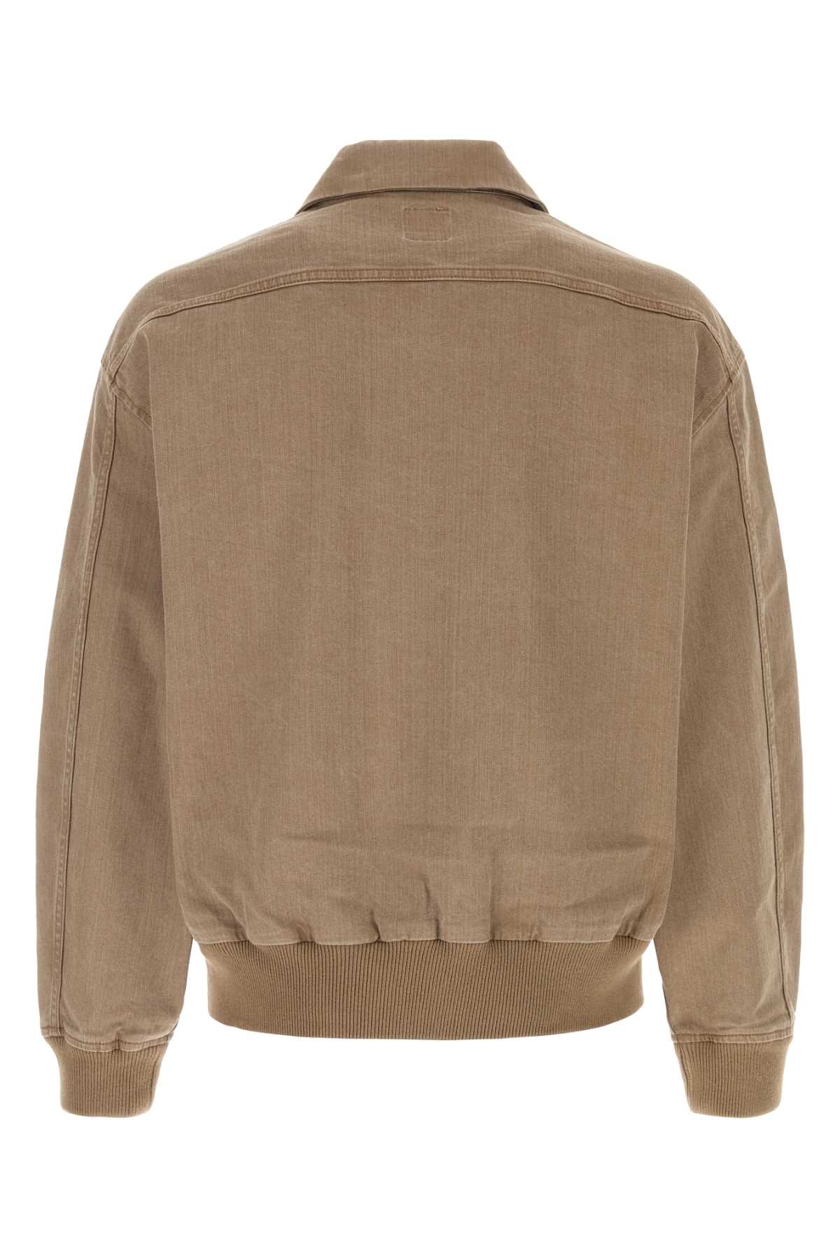 - Brown stretch denim bomber jacket